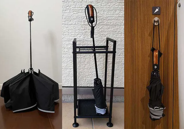 コンビニ、カフェやトイレなど、折りたたみ傘は置き場に困ることがしばしば。