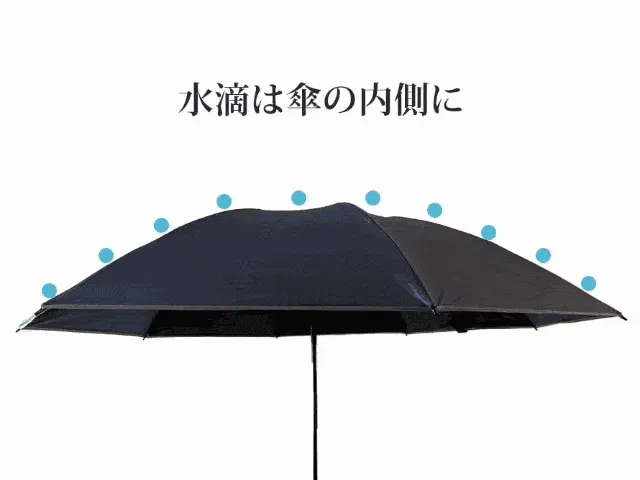 そんなことにならないように、雨粒は内側へ折りたたみ外側へ飛び散らないようにしました。