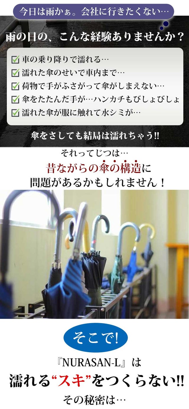 そんな想いから、当時持っていた折りたたみ傘を見て生まれたのがNURASANです。