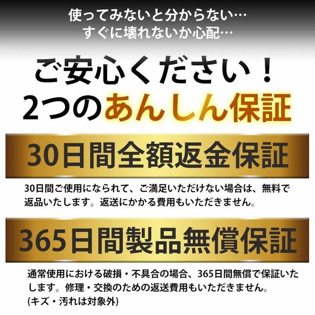 そこで、通常使用における破損や不具合は365日間無償で修理もしくは交換いたします。