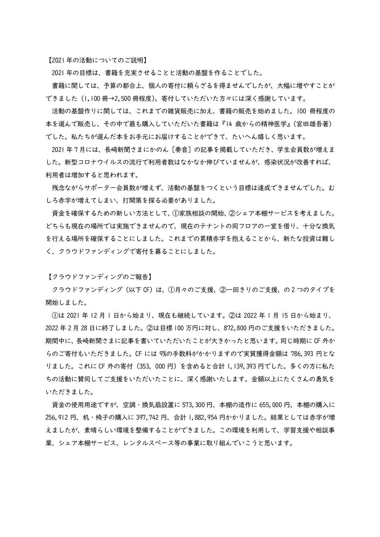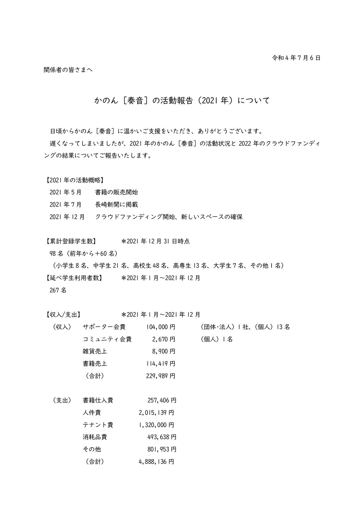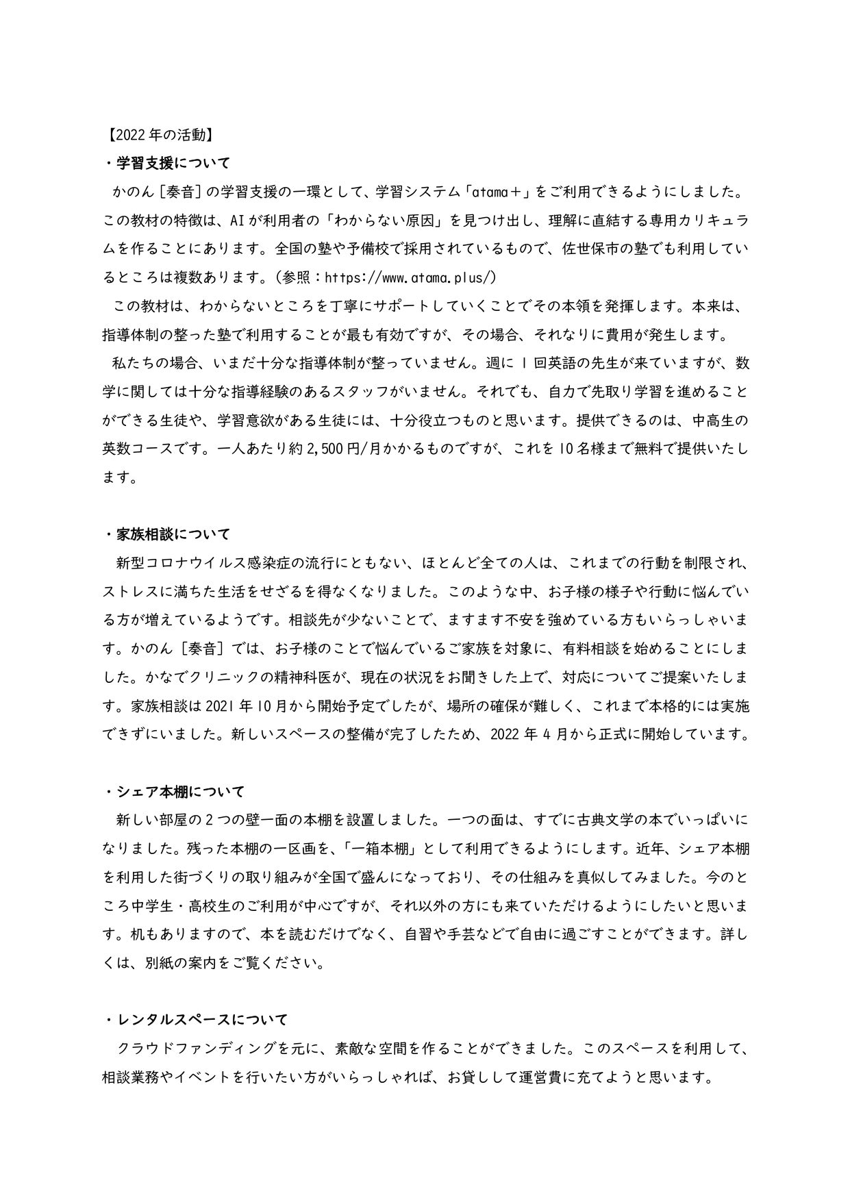 2021年は、なかなか思うように活動できませんでしたが、今年になってその苦労のいくつかが少しずつ実を結び始めたように思います。