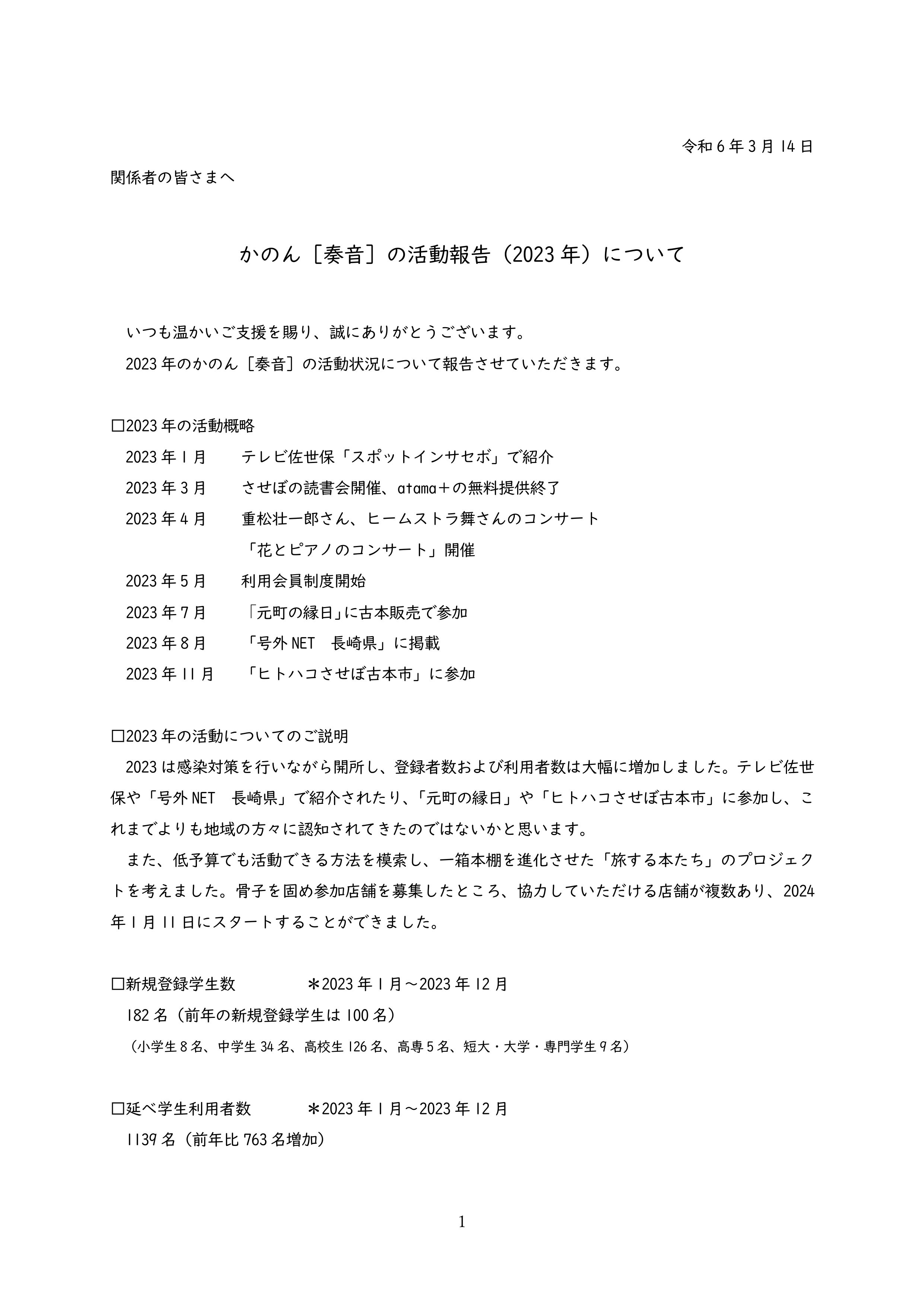 遅くなりましたが、2023年の活動報告です。