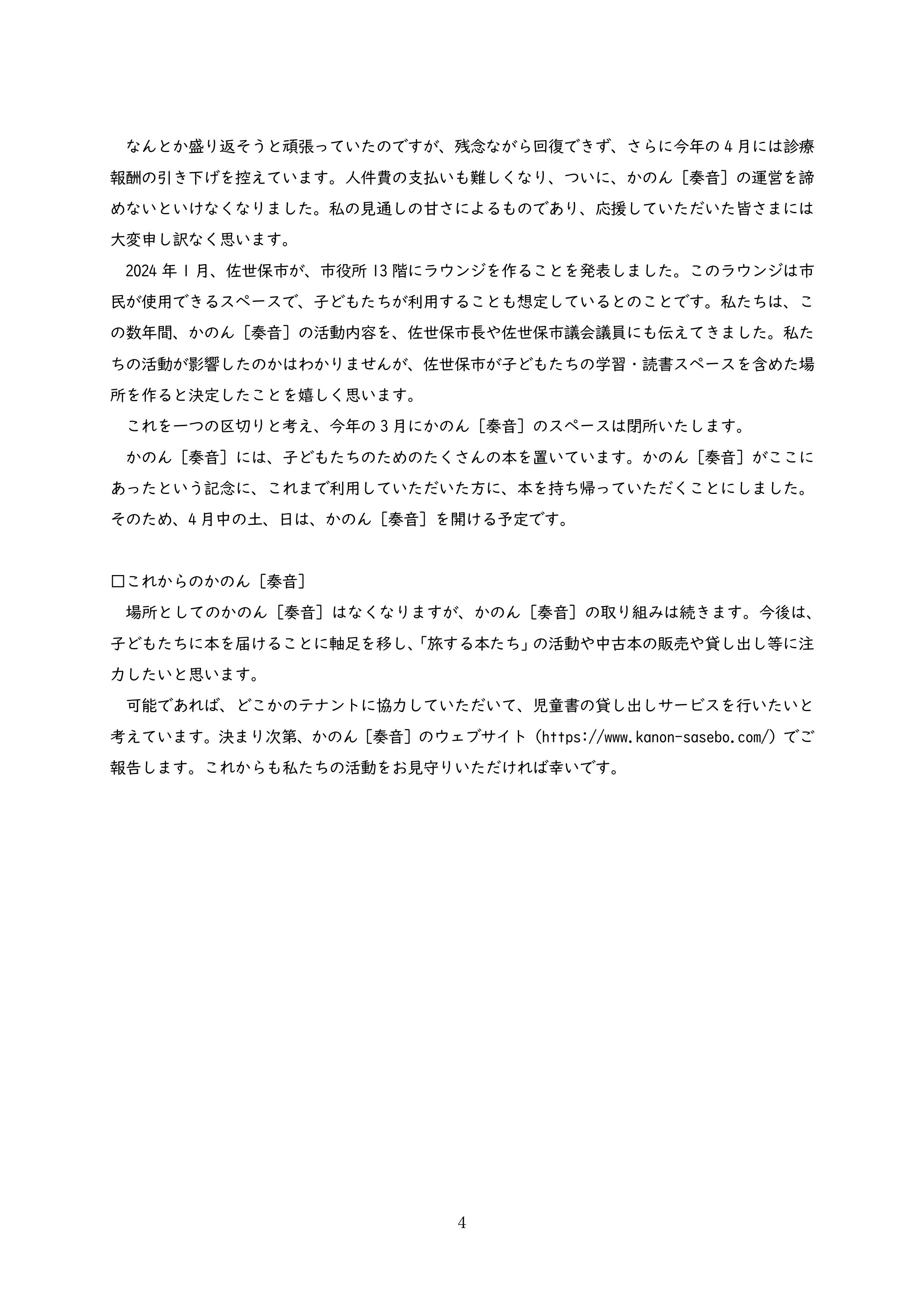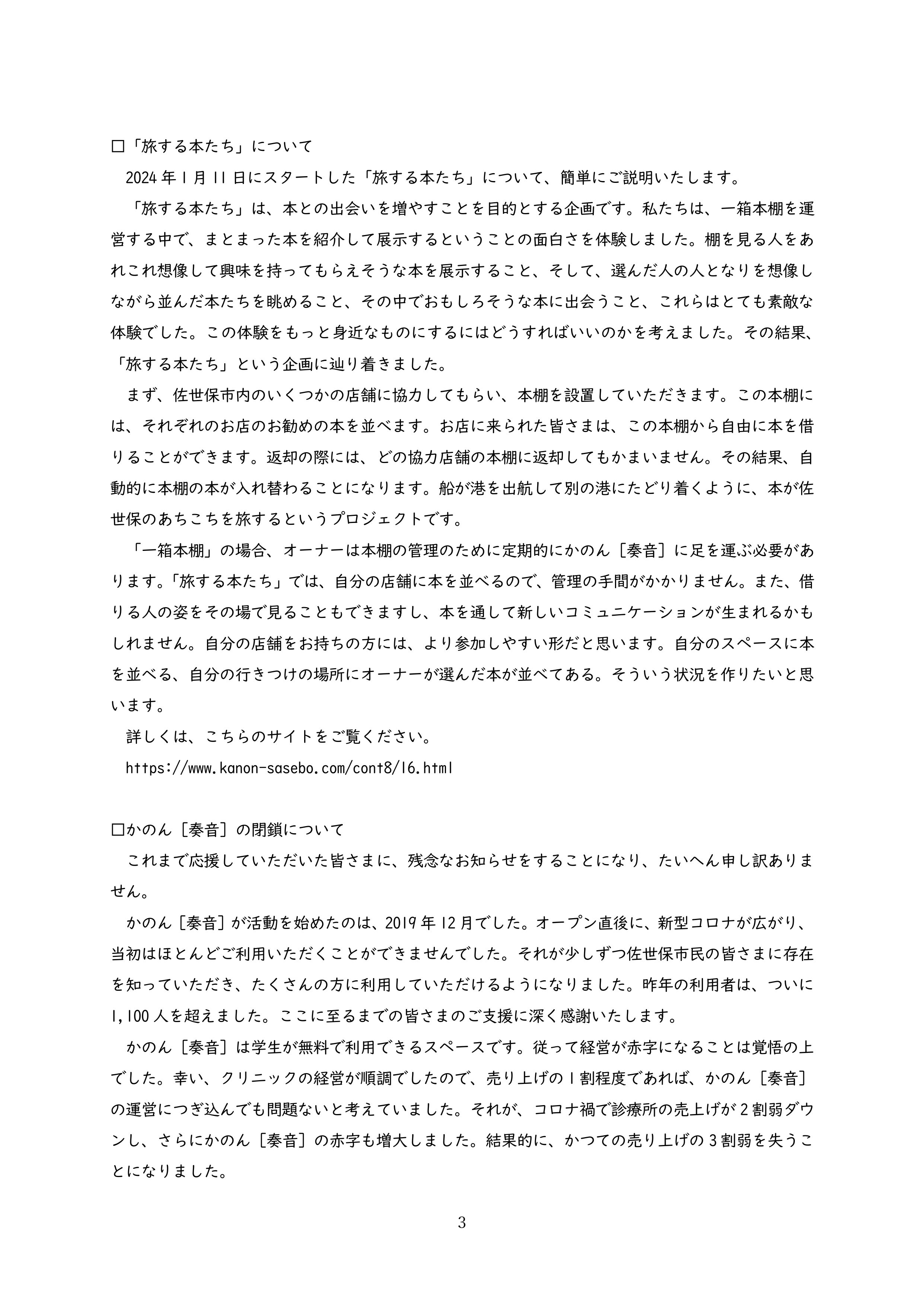 その後の状況の変化があり、最終的には、大幅に縮小しながらも活動を継続することになりました。
