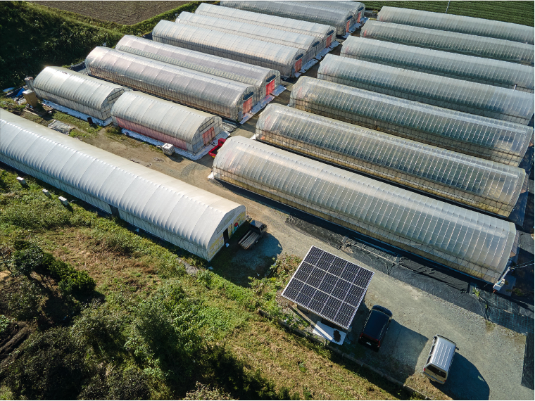 三重県、多気町のPomona Farm。太陽光パネルを設置し、ハウスのエネルギーに活用