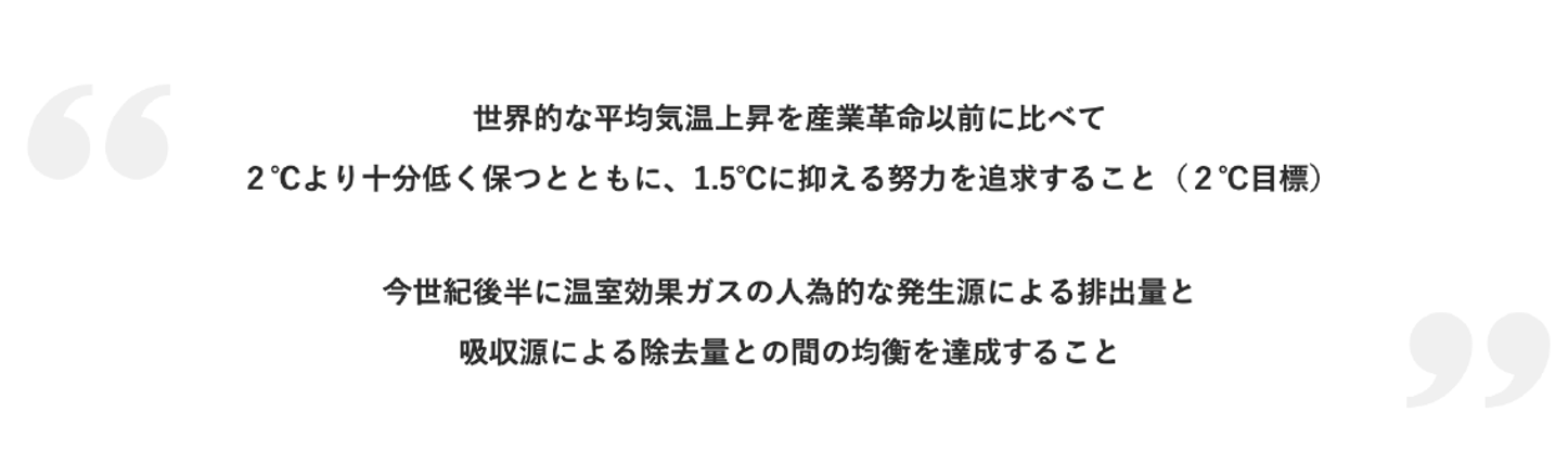 2015年のパリ協定で気候変動に関する長期目標が採択され、