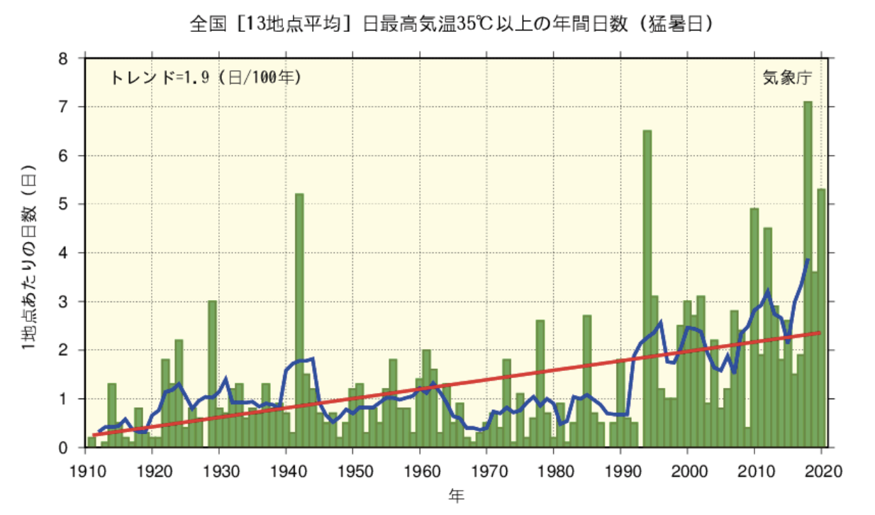 猛暑日の日数が継続的に増加し、気温上昇がこの先も予想される世界