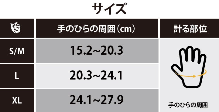 A.上記のサイズ表を参考に、ご自身の手のひらをメジャーで計っていただき、適したサイズをお求めください。