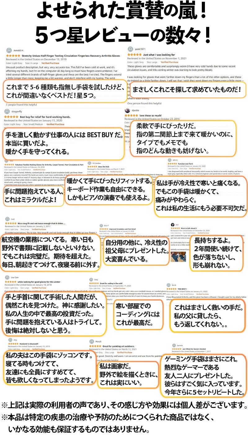 ・本商品は、手の治療を目的とする製品ではございません。いかなる疾患に対しても、治療の効果・効能を保証するものではございません。