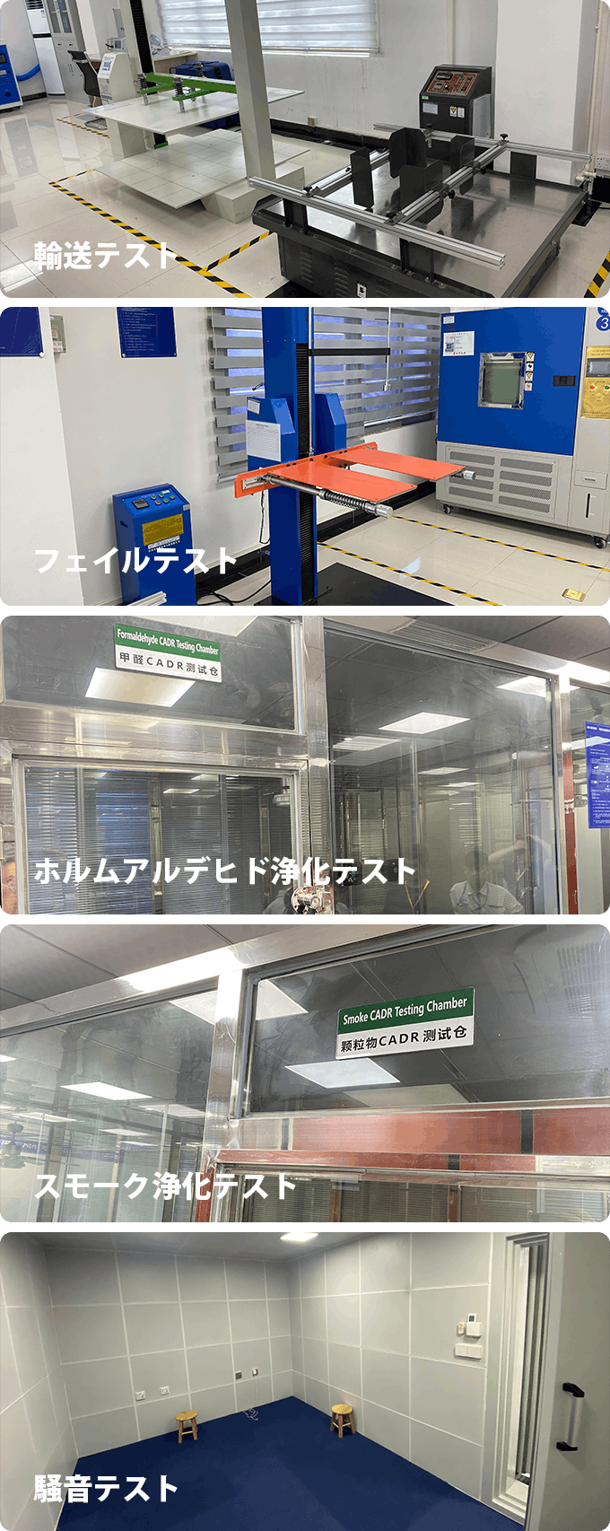 製造以外にも、パートナーはCADR、ノイズ、スモーク、耐久性テストなどの性能テストも提供しています。