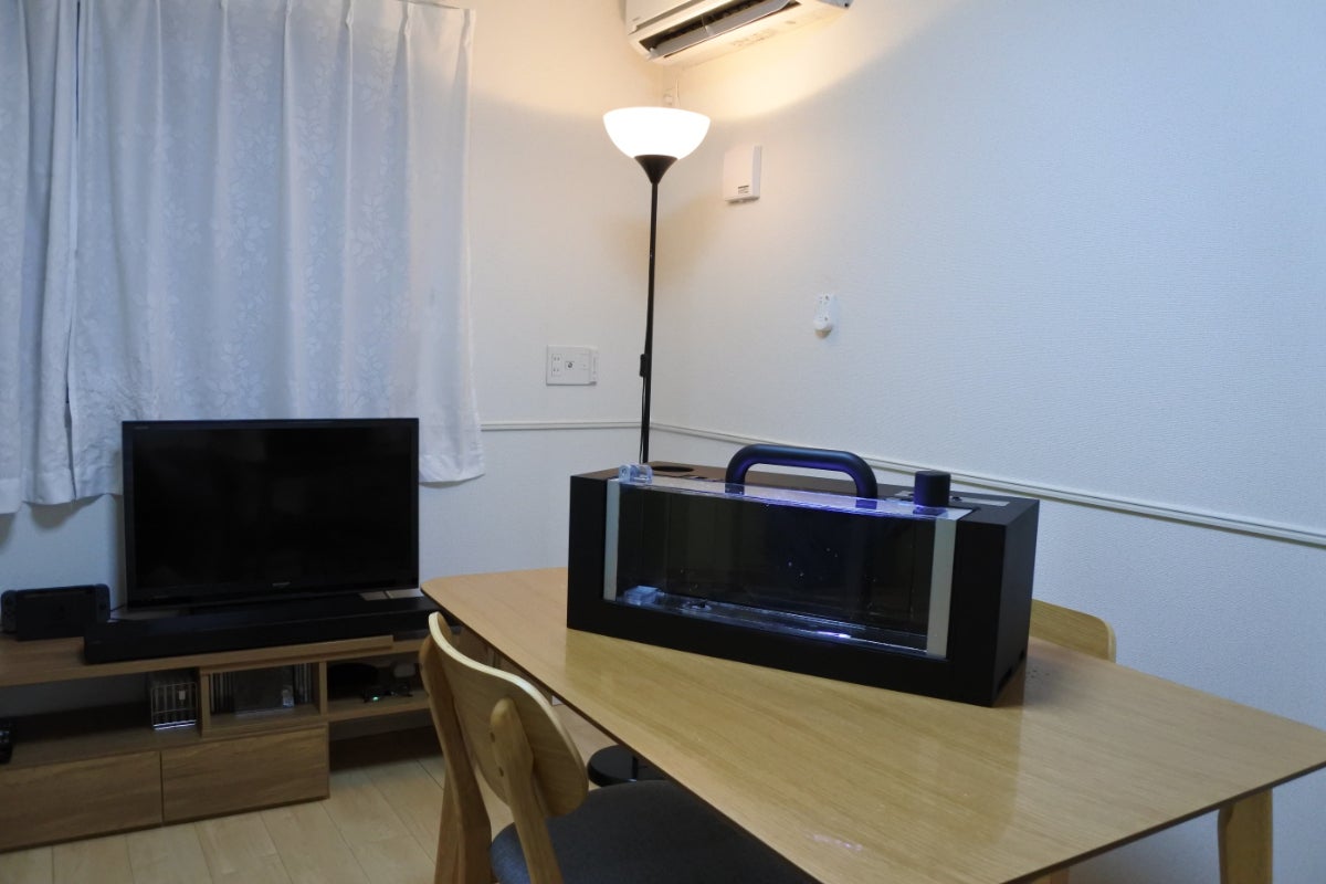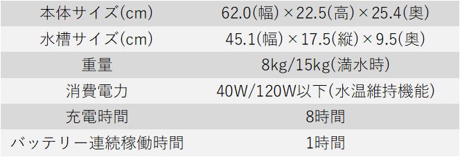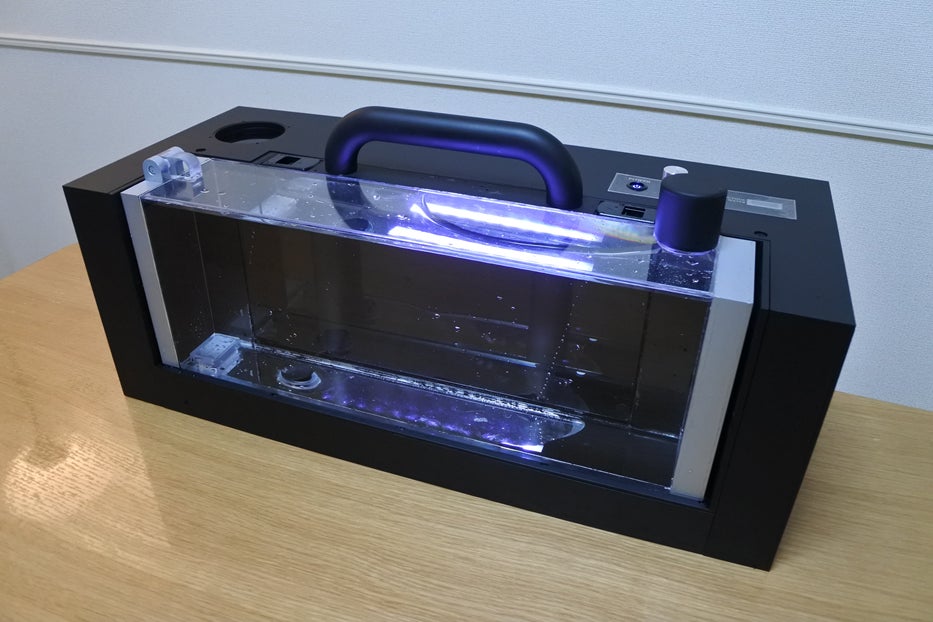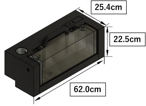 サイズ:62.0cm(幅)×22.5cm(高)×25.4cm(奥)、素材:ABS樹脂(本体)、ABS樹脂・アクリル樹脂(水槽ユニット)、ABS樹脂(吸着材カートリッジ)、軟質ウレタンフォーム(本体カバー)