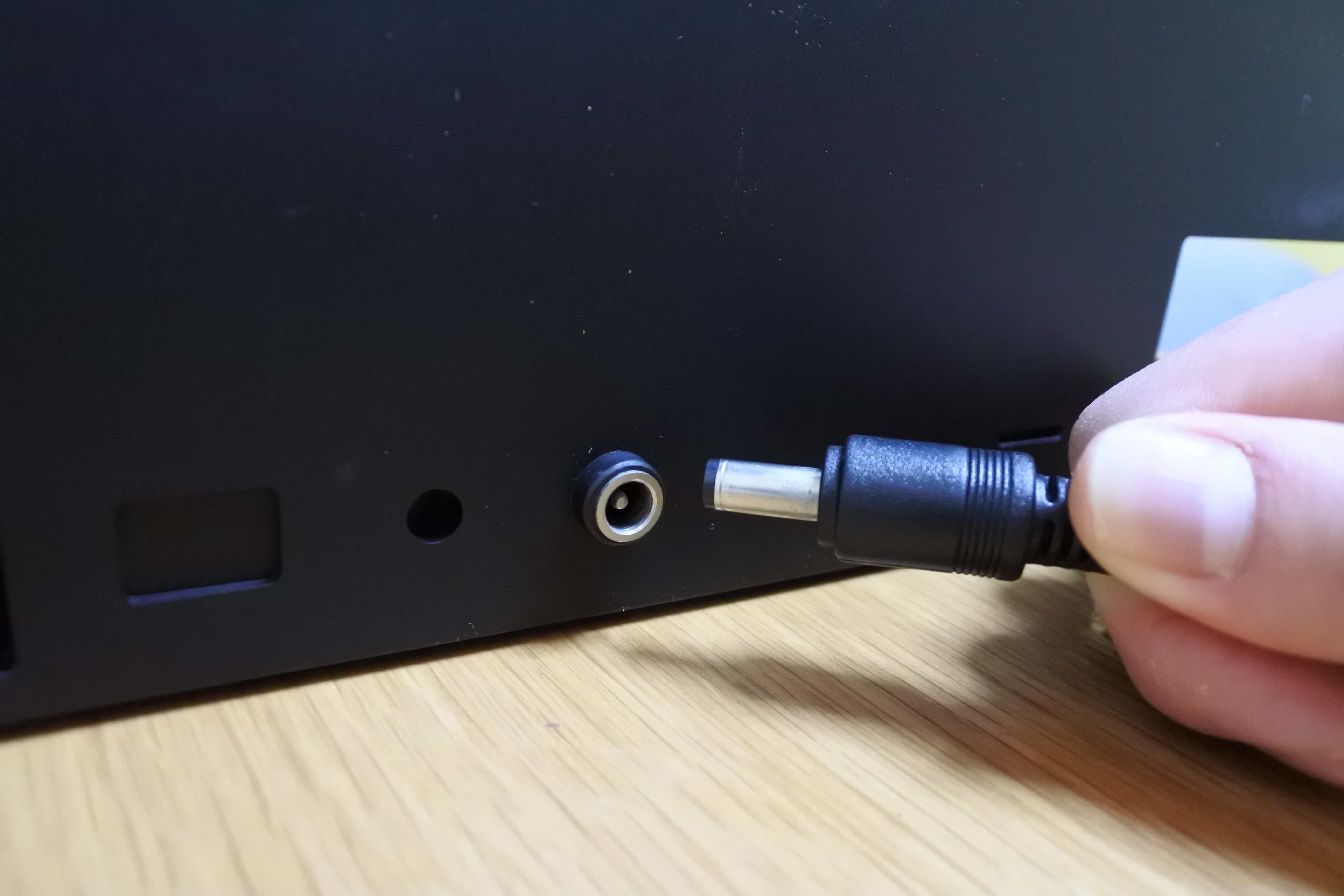 本体裏側に電源ジャックの挿入口があり、外部電源を接続できます。
