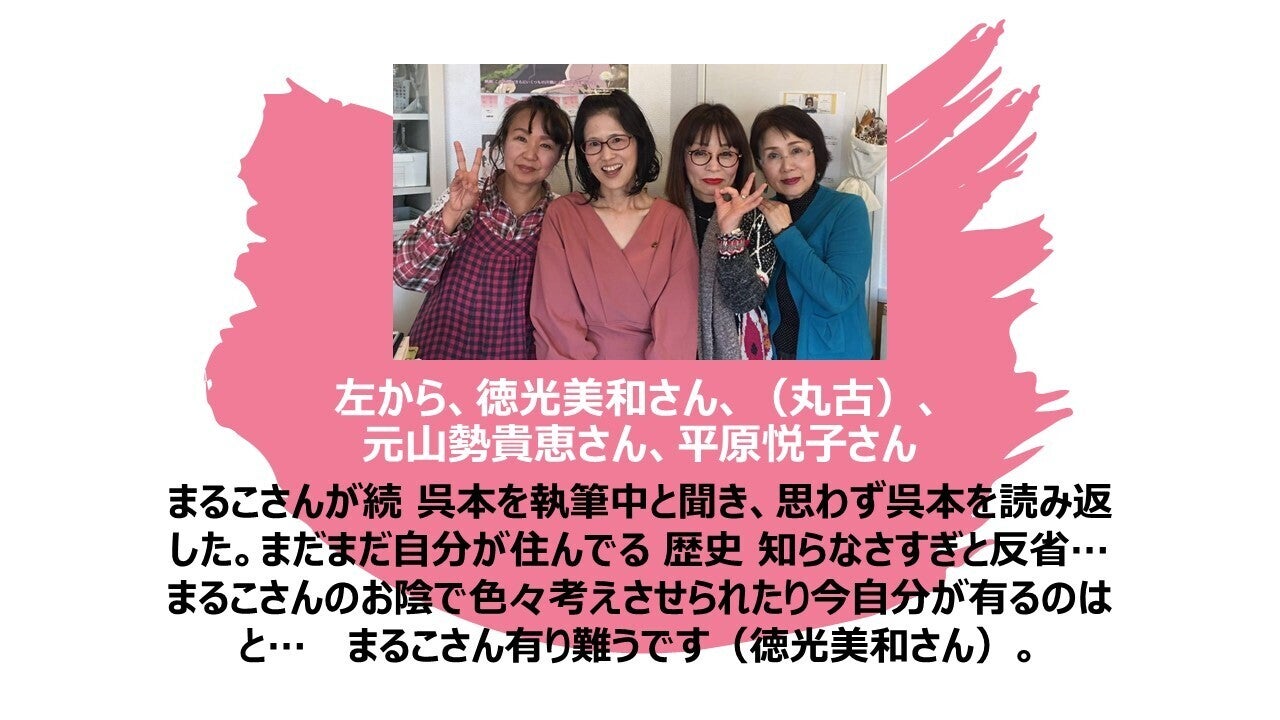 『続・呉本(仮称)』も、『呉本』の出会いから広がった<呉の人々>に新しく出会えたからこそ、「どうしても書かなければ」と決意しました。つまり、「呉の出会いが書かせてくれる本」です。お話を聞かせてくださった方々のためにも、力を貸してくれる呉のみんなのためにも、めいっぱいがんばります。