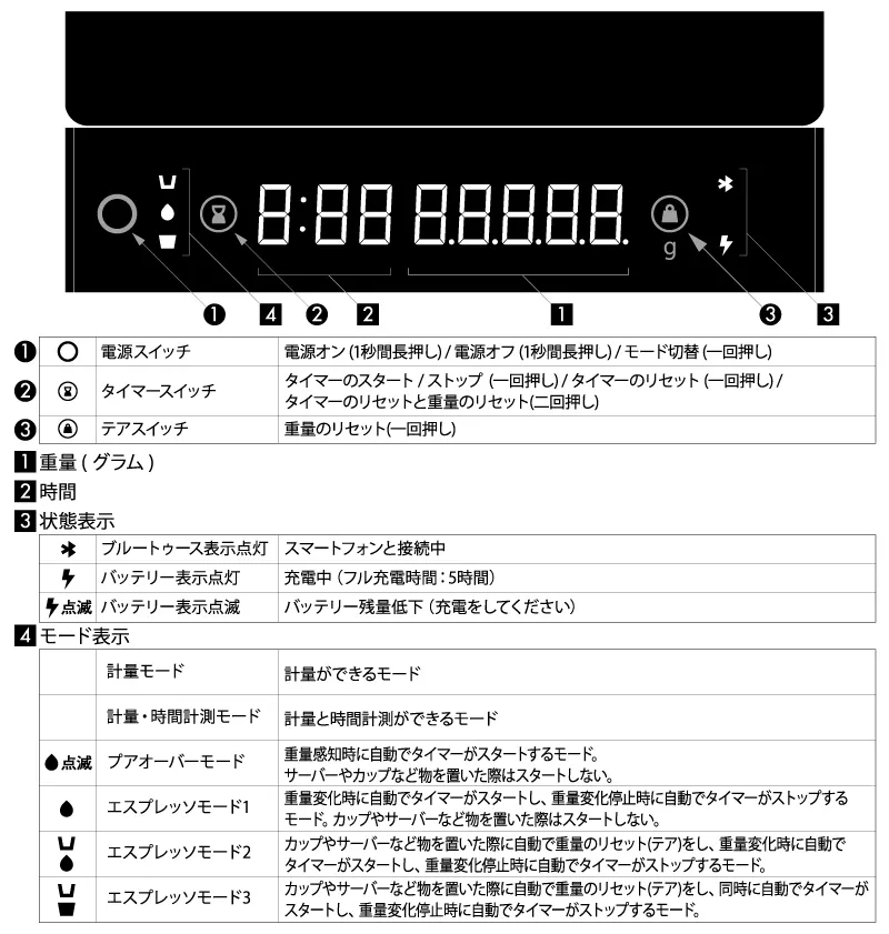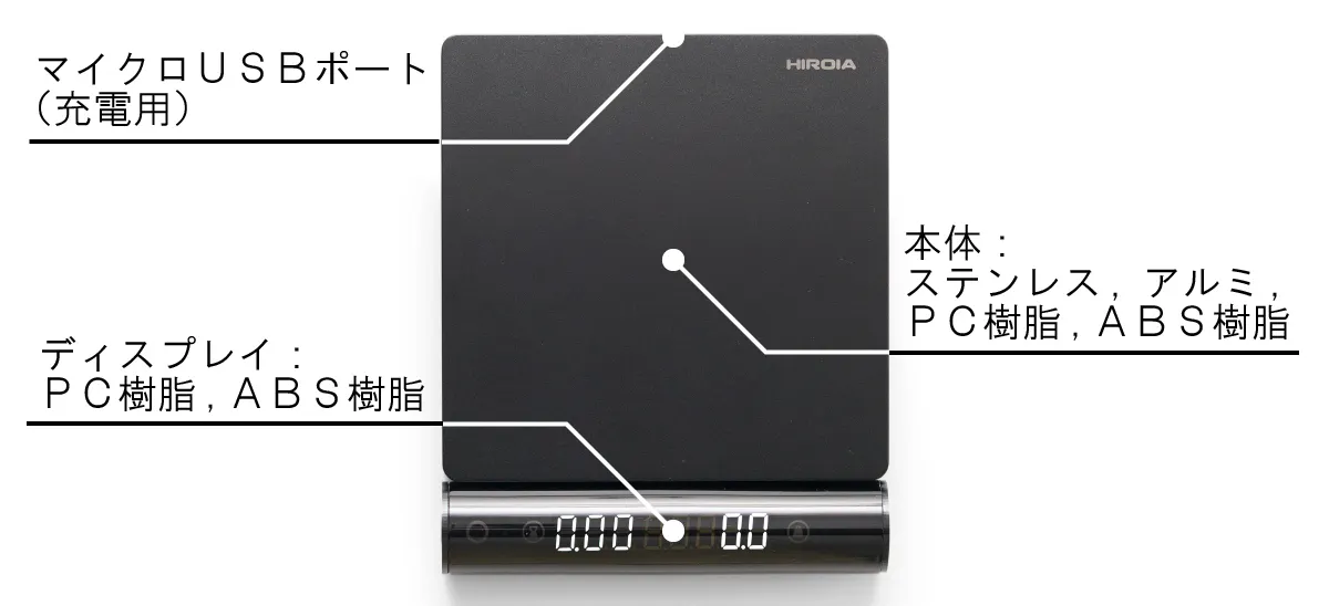 『JIMMY』は普通のスケールとは違い、ディスプレイの右側に注湯量(g)、左側に時間が同時に表示されるため、ひと目で簡単に3つの要素を計測・管理できます。