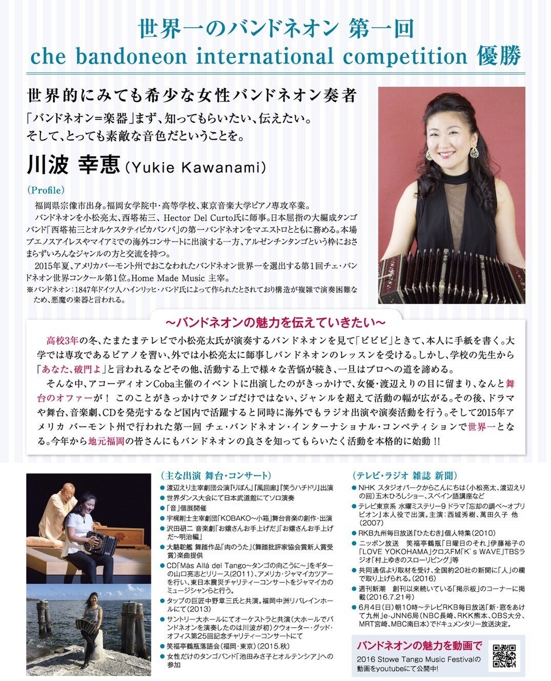 ○バンドネオン奏者川波幸恵様によるスペシャルLive