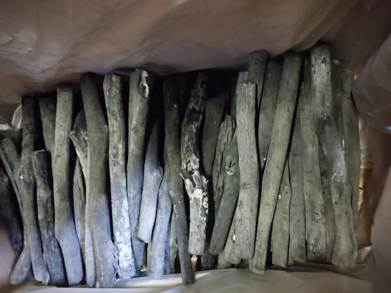 備長炭って、窯から出すとすぐに消し粉(砂と炭の粉が混じった粉)
