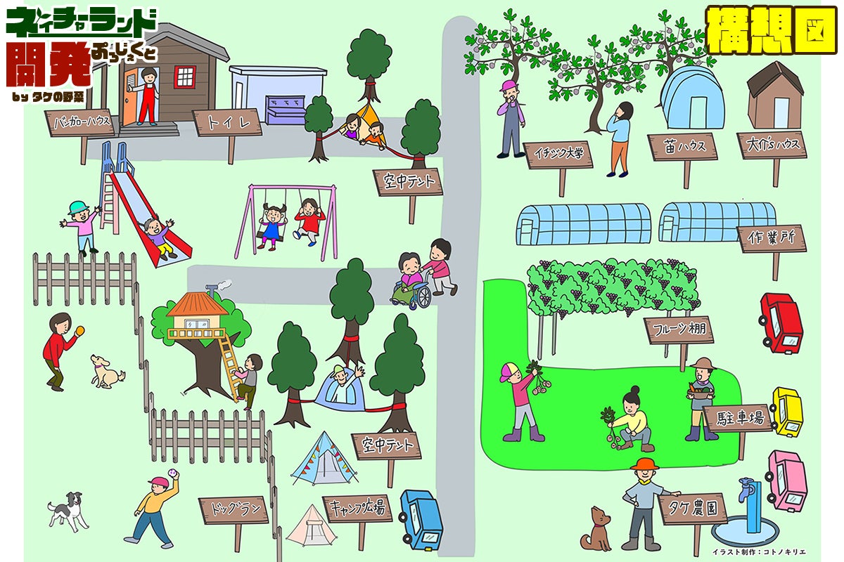 ネイチャーランドは、現在「タケの野菜」の農場に隣接する形で開設します。