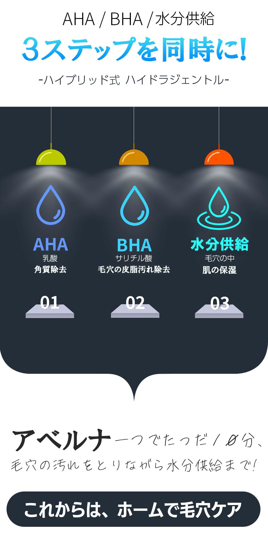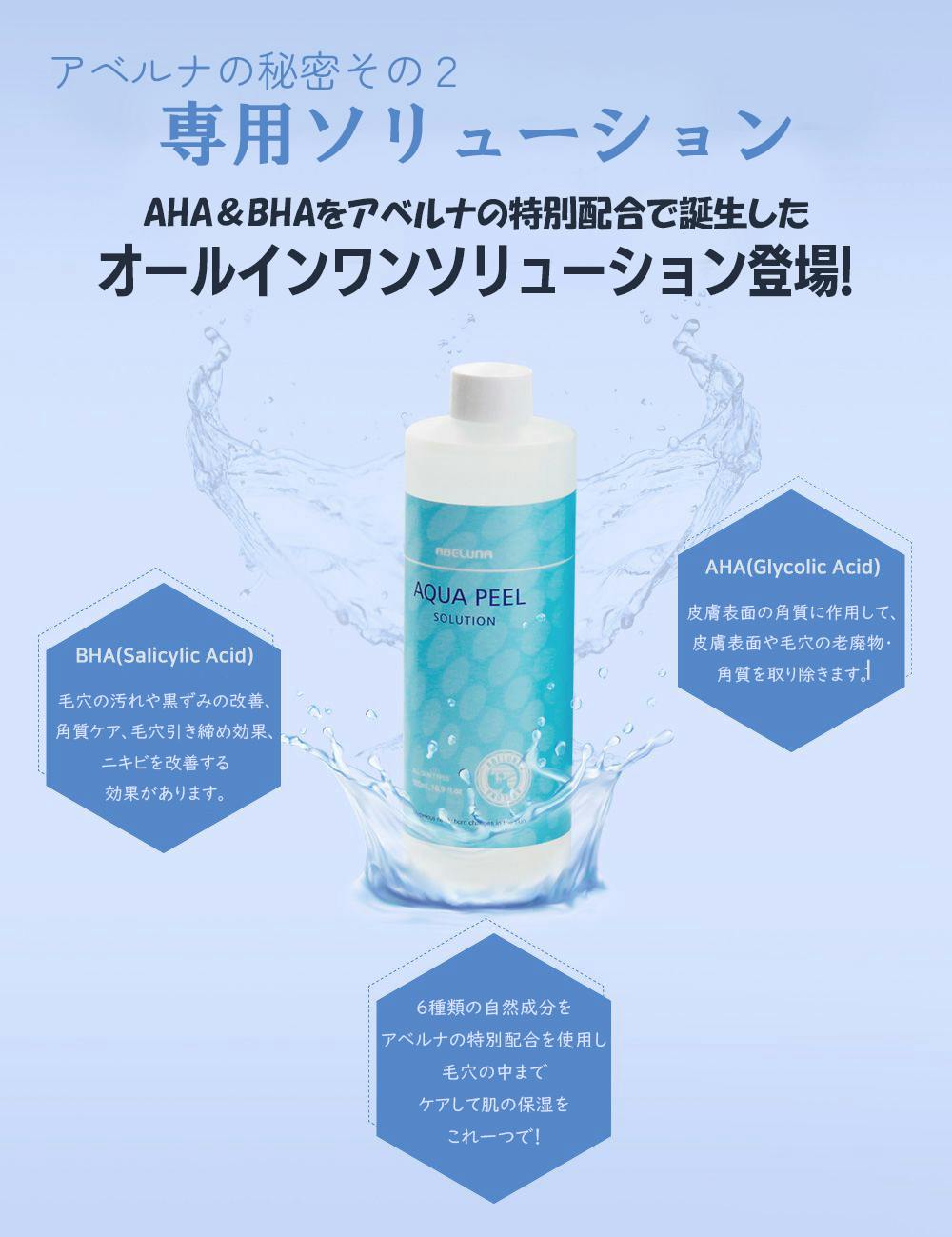 - ②アベルナの専用ソリューションで毛穴の汚れを取り除きながら同時に肌に水分供給ができること