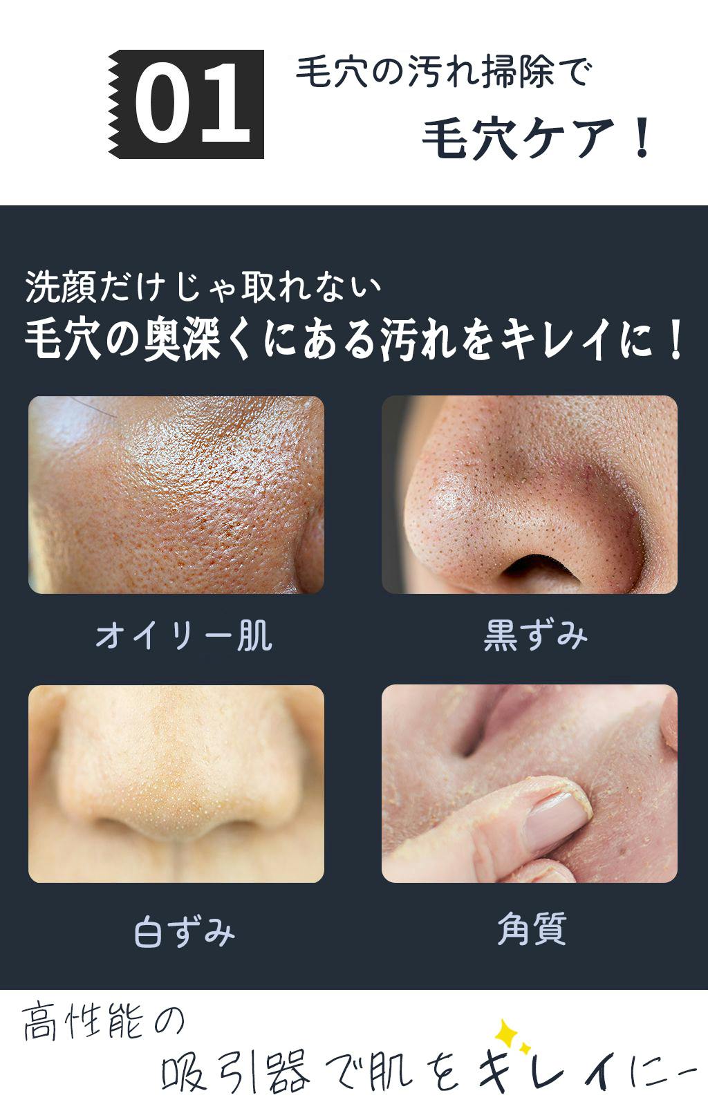 - ①しっかりした吸引テクニカルで毛穴の汚れを取れること