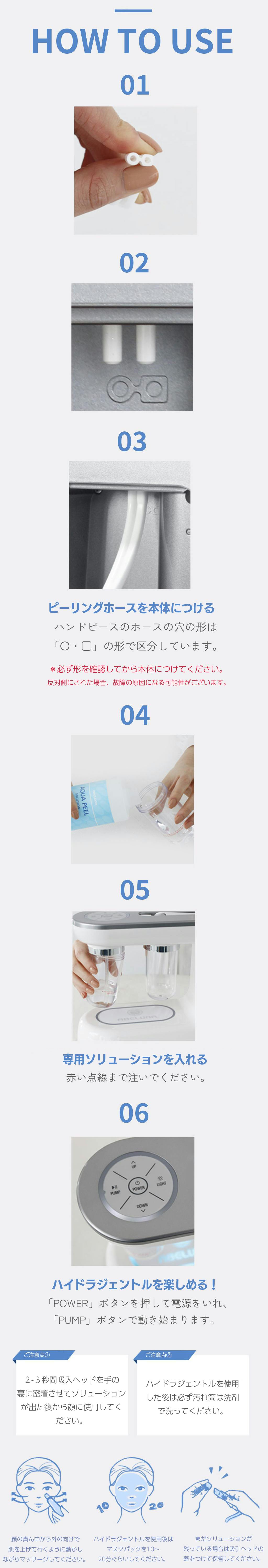 - 製品開封後、初回使用時に真空圧(吸引)は発生しているがソリューション液が出ない場合は、同封のハンドピースヘッド(シリコンヘッド)を交換してお試しください。