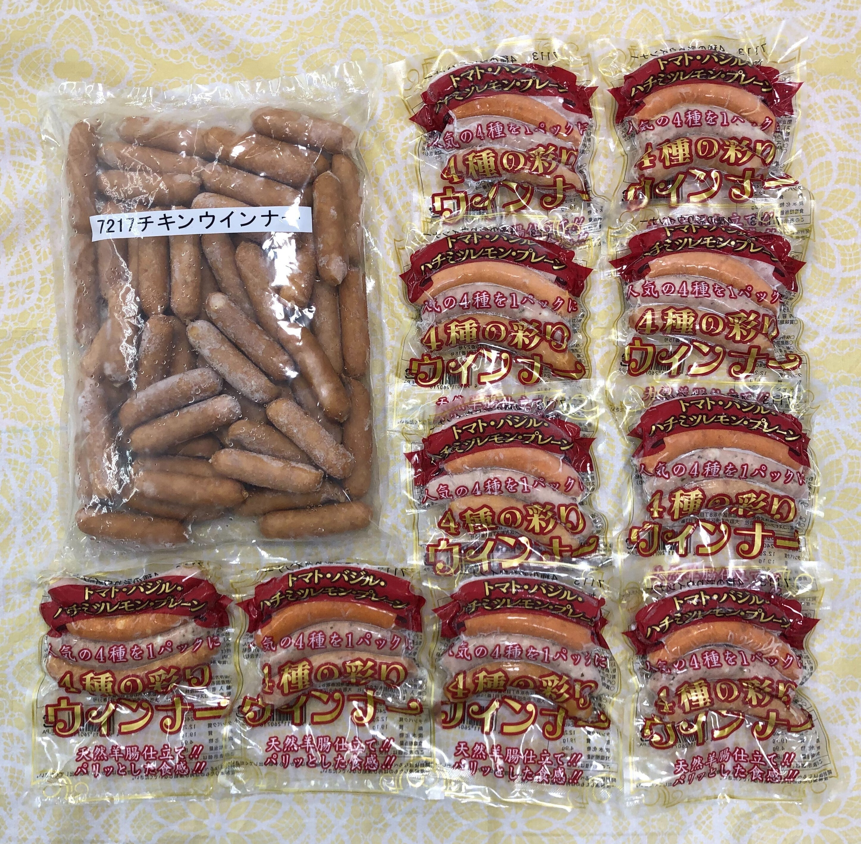 → 4種の彩りウインナー 1㎏(100g×10p)、チキンウインナー 1㎏