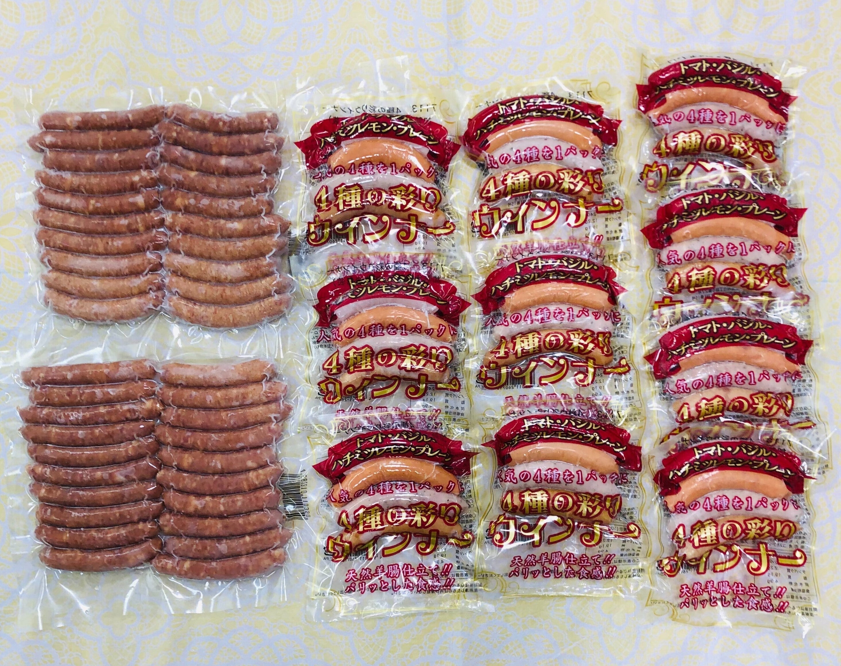 →4種の彩りウインナー 1㎏(100g×10p)、ハバネロソーセージ 800g(400g×2p)