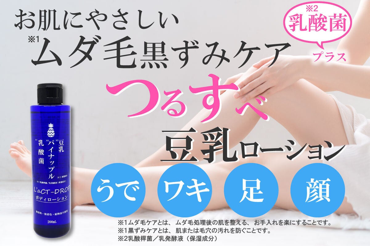 2022/01/07 18:10サポーターの皆様、こんばんは!今回、ご紹介するのはムダ毛ケア後の毛穴を整えて、また毛穴に働きかける全身用化粧水です。カミソリなどで除毛、脱毛した後ってお肌のストレスは大変なものです。鳥肌のようになってる状態のままでは、黒ずみなどの原因になってしまいます。今回ご紹介するラクトドロップボディローションは、脱毛クリニックでも施術後に推奨される【豆乳ローション】がベースとなっています。大豆イソフラボンが毛穴をしっかりケアしてくれます。この豆乳ローションにパイナップルエキス、パパインエキスなどを配合!ムダ毛の処理をより簡単に!さらにさらに【美肌菌】を整えてくれる乳酸菌を配合。肌体力をアップさせて本来のうるおい肌に。勿論化粧水ですのでお顔にも使用できます。これ一本でお風呂上がりなどにご使用で全身保湿でつるすべ肌に!是非ご検討ください。 もっと見る