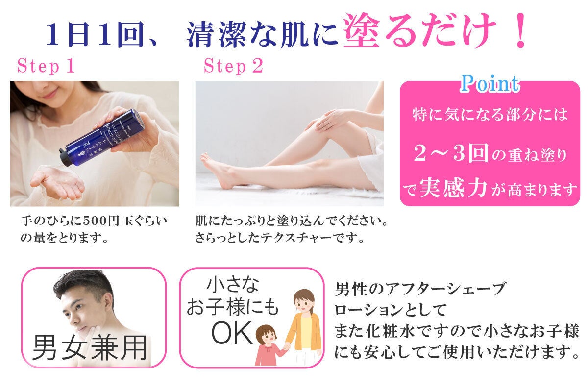 ※適量を手のひらにとり、全身になじませるようにご使用ください。