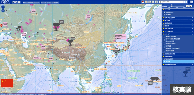 地形図のみではなく、主題図(文化・文明・自然・政治・危機管理等)も重ねて表示できる機能や、地名検索、距離計算等の機能もWebでできるようにしました。また、地図同士を重ねて新たな情報が生み出せるよう、地理情報システム(GIS)機能の一端を用いて現在に至っています。