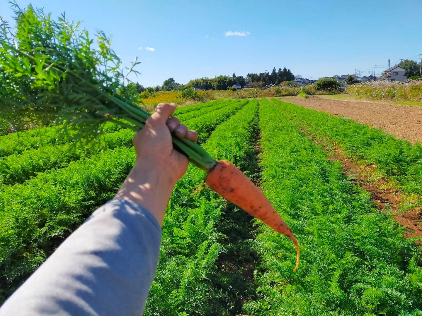 (上の写真は、耕作放棄地で 荒れ地だったところを農薬・除草剤や肥料を一切使わず2年間以上土作りを行ってきた畑です。今はにんじん栽培中です。)