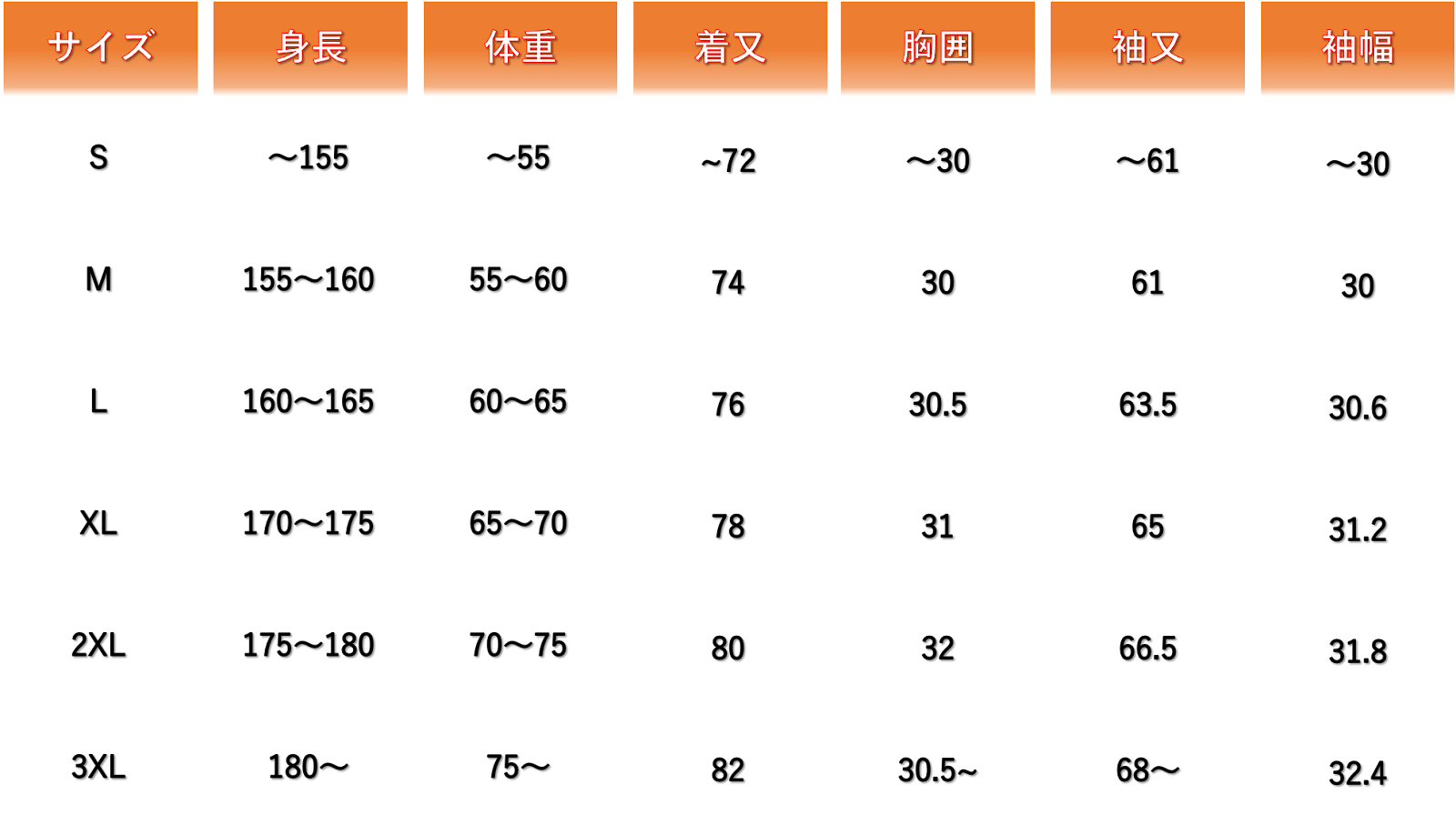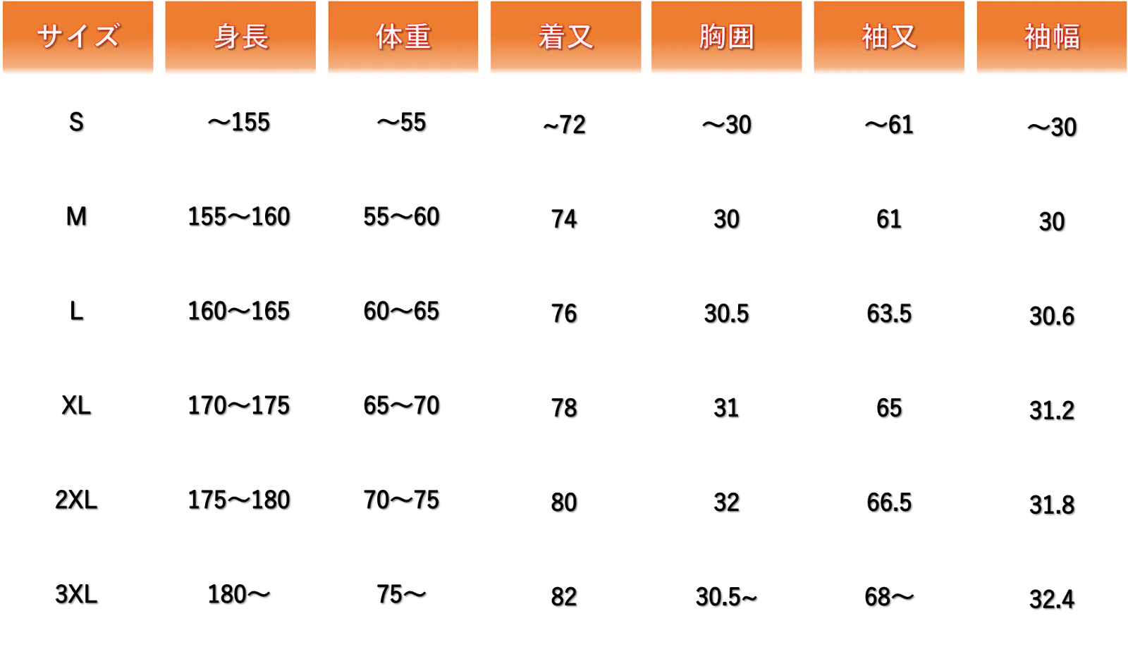 誰でも着用出来るようなサイズ展開をご用意しました。