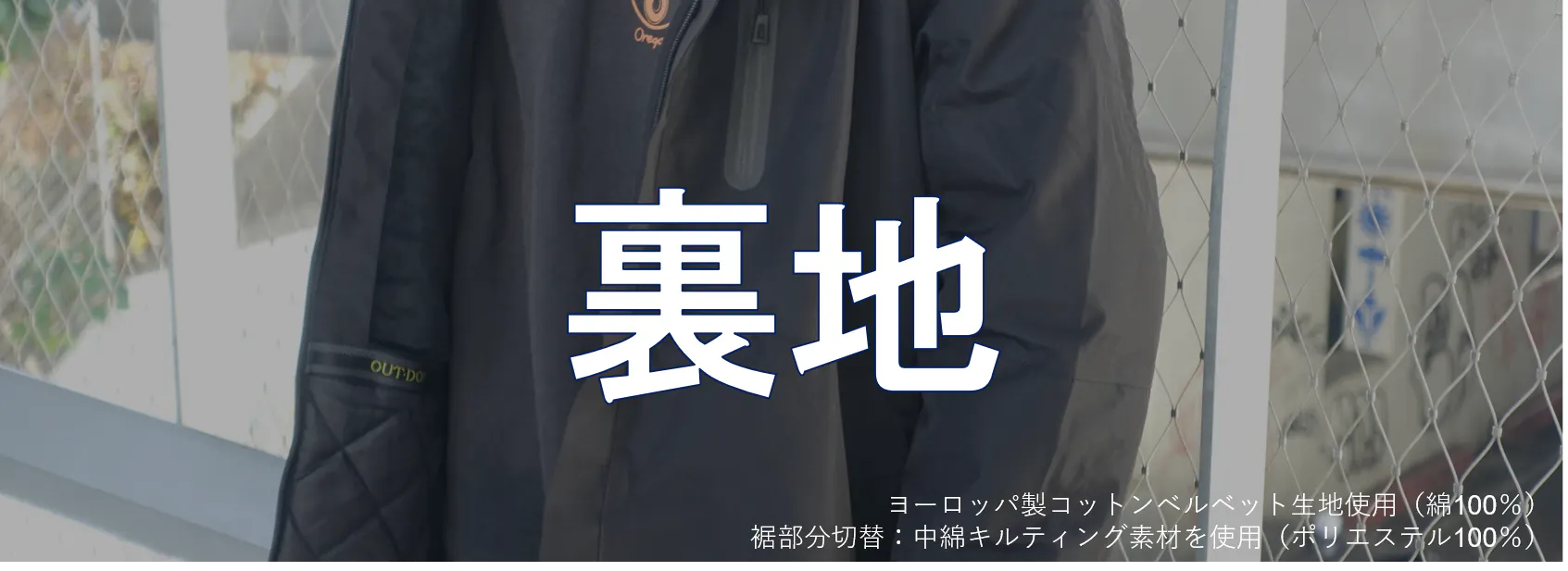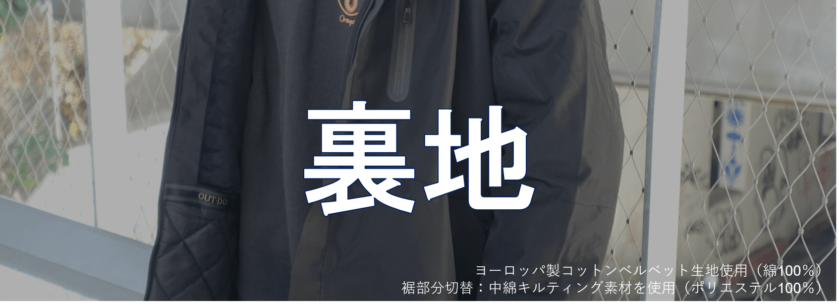 撥水、防水防風、防汚生地を採用している為、雨風に強く、汚れや水に強い表面生地。