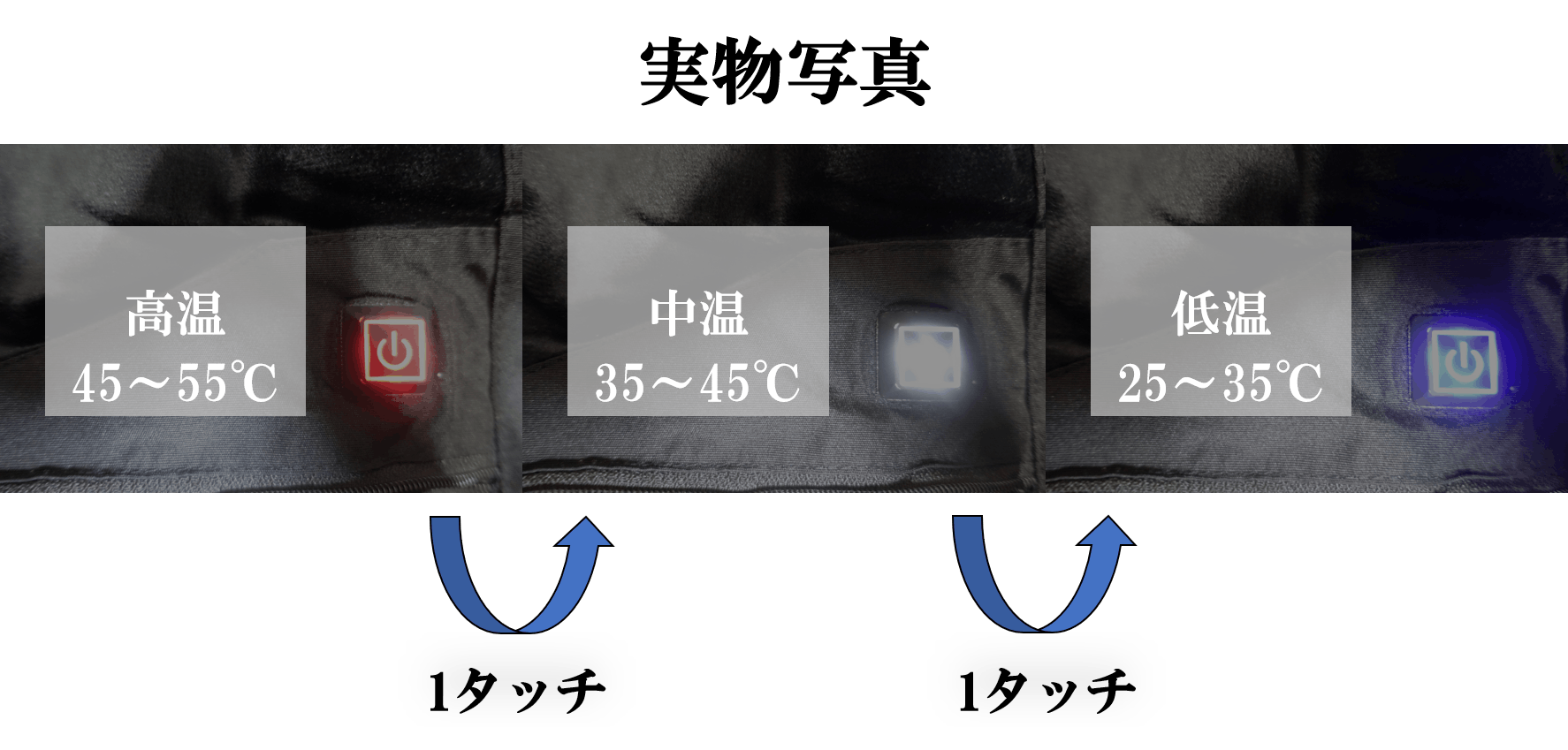 電源ボタンを押すたびに3色3段階の調整が可能です。