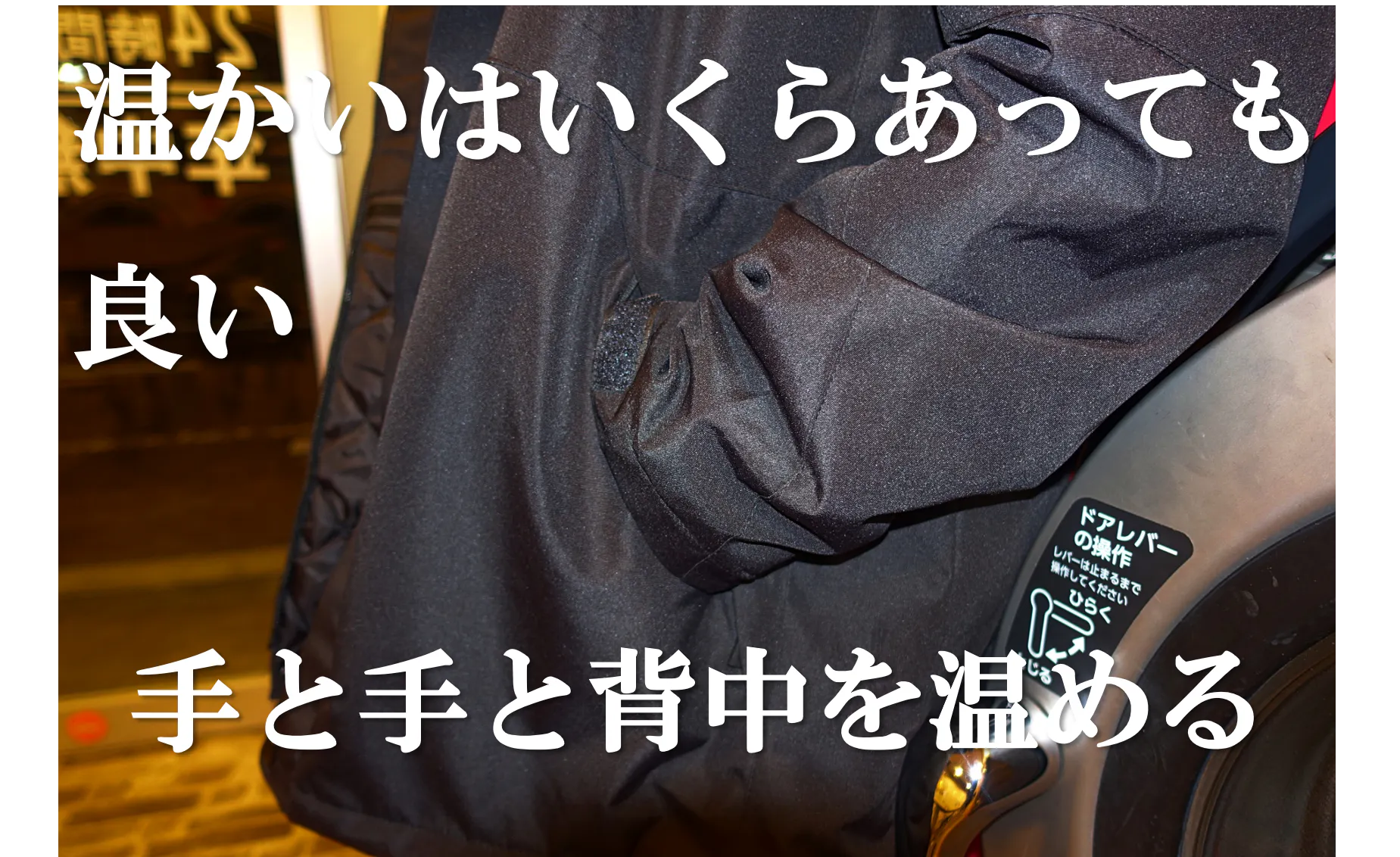 合計3か所を急速に温めてくれる優れたジャケットです。