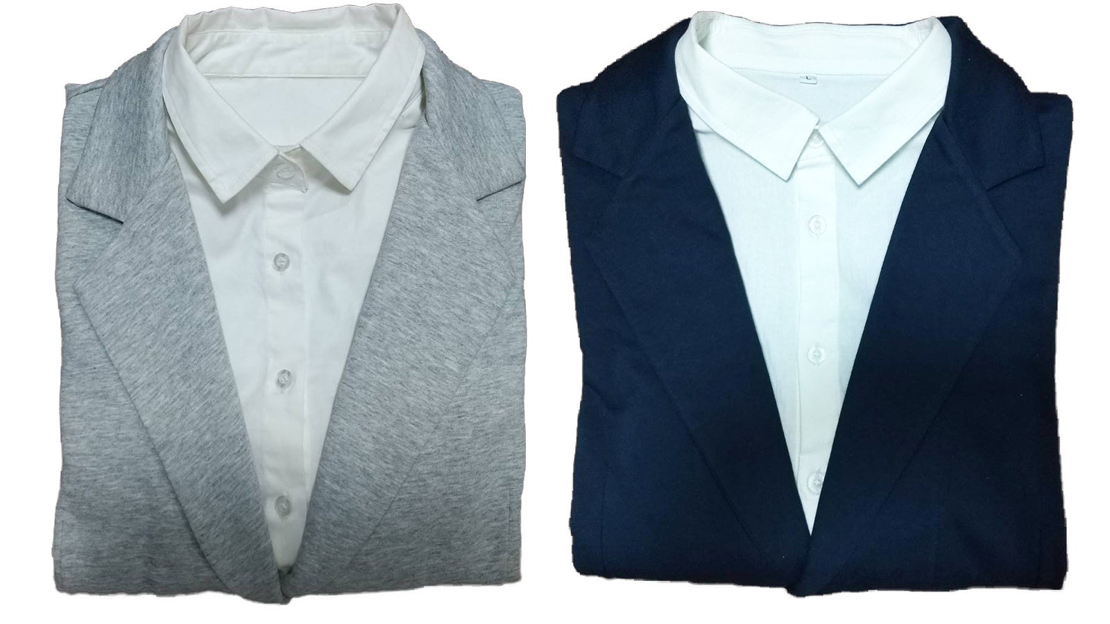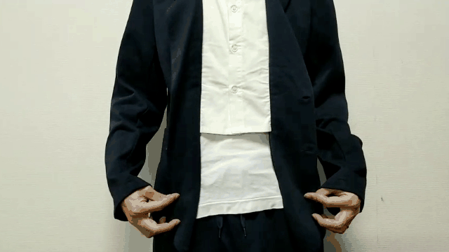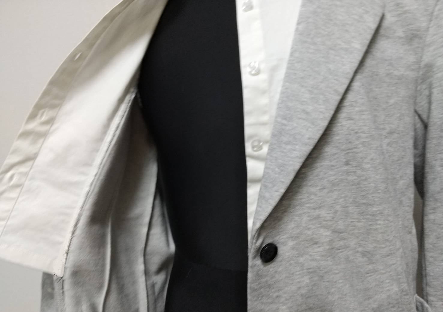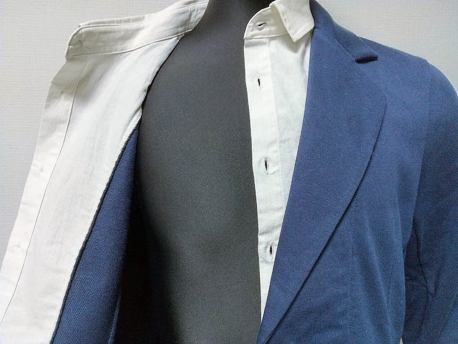 実際は、ジャケットのフロントから見える部分と襟だけにシャツが埋め込まてたデザインなんです。