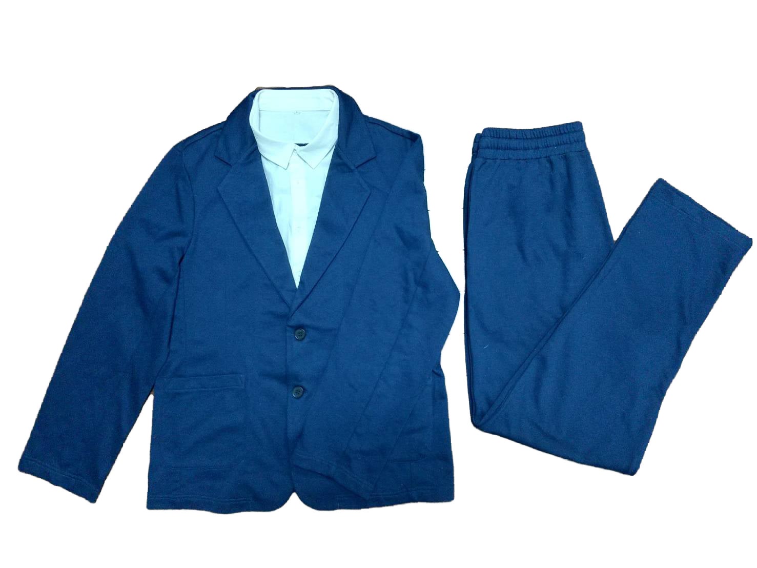 見た目はビジネススーツですが、コットン100%の高級スウェット生地製なので、ルームウェアとしても、アクティブウェアとしても、もちろんパジャマとしてもご利用いただけます。