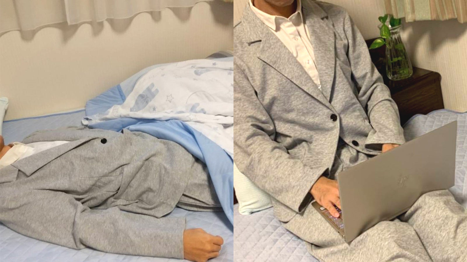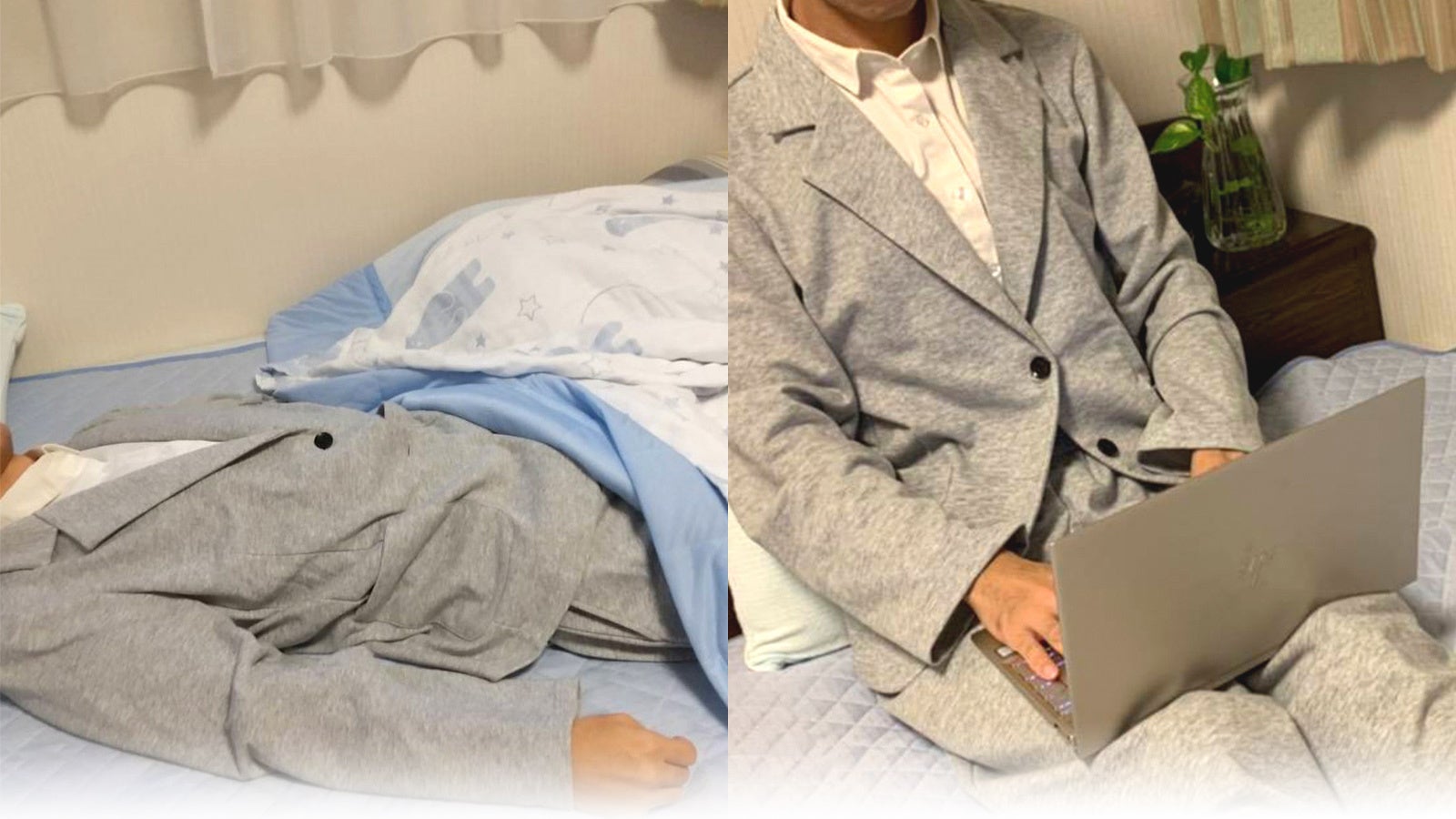 ビズウェットは、数多くあるテレワーク用の服の中でも、シャツ&ジャケット一体型という、まったく新しい発想のスーツです。
