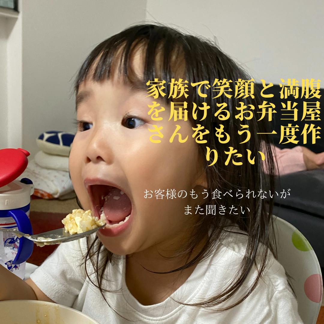 お客を待っているだけでは何も変わらない状態だったのでこの状況の中で店をやって行くのは難しいと考えた私は急遽ラーメン屋からお弁当を作って届けようと思い地元の友達など家族、子供が通っている幼稚園などにも協力してもらいなんとか生計を立てていましたそうしてるうちに口コミなどでボリュームがすごくて美味しいなどと言う言葉をたくさんいただきました。