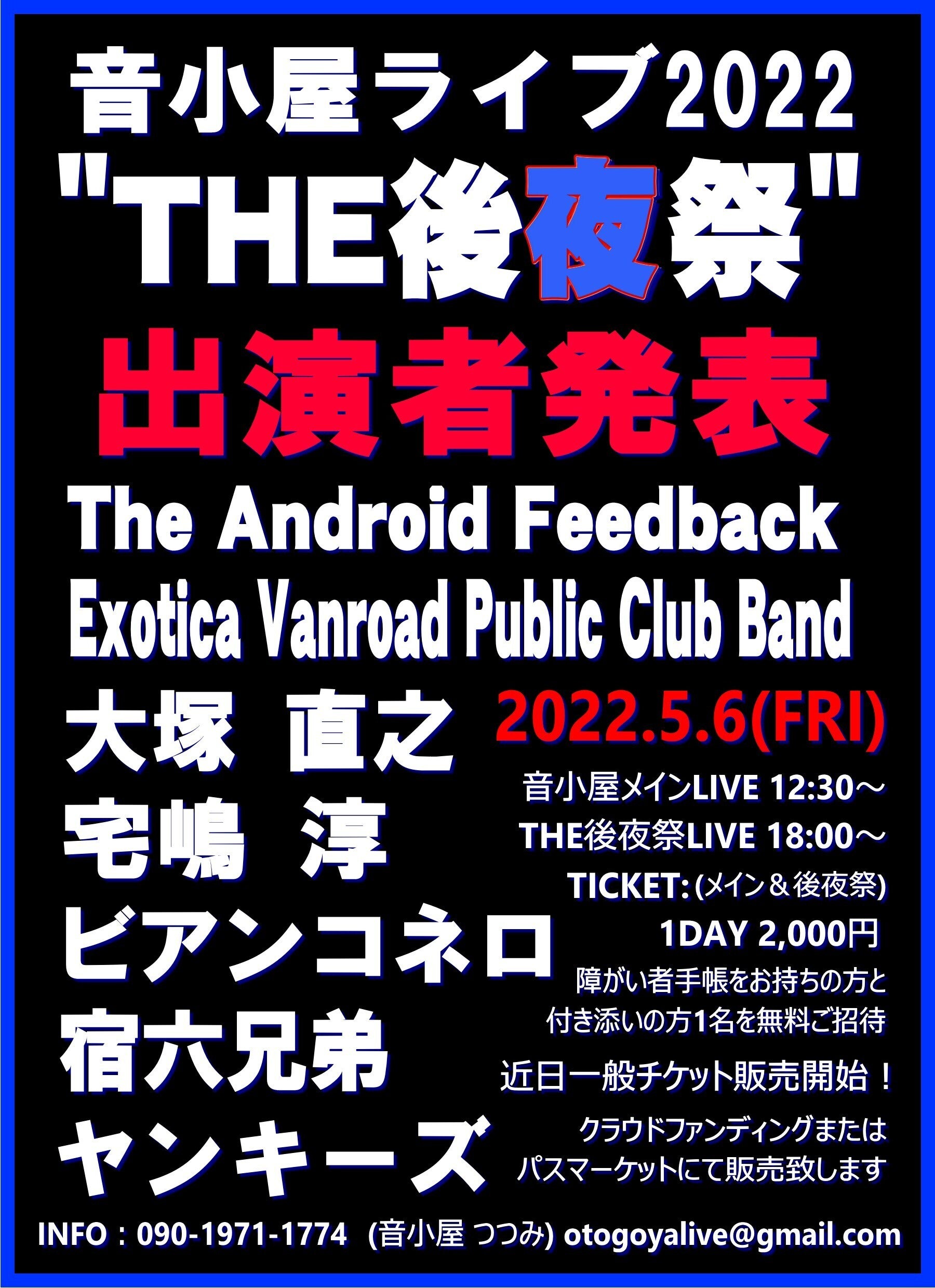 (この入場チケットでお昼のメインライブもTHE後夜祭もお楽しみいただけます)