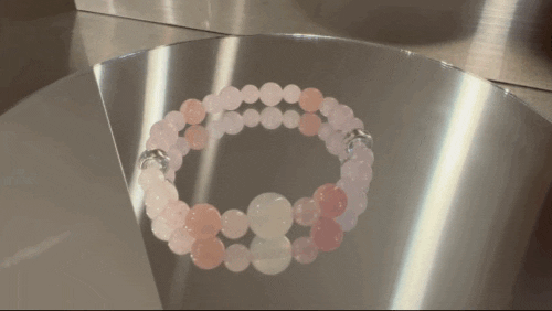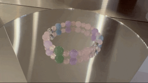肌馴染みもよく、違和感なくつけやすい色ですが、天然石のアクセントが入っているのでとてもバランスのよいデザインに。ゴム仕様でどこの角度からみても綺麗に見えます。楽につけてもらって、アクセサリーとして服のコーディネートと合わせて楽しめる商品です。