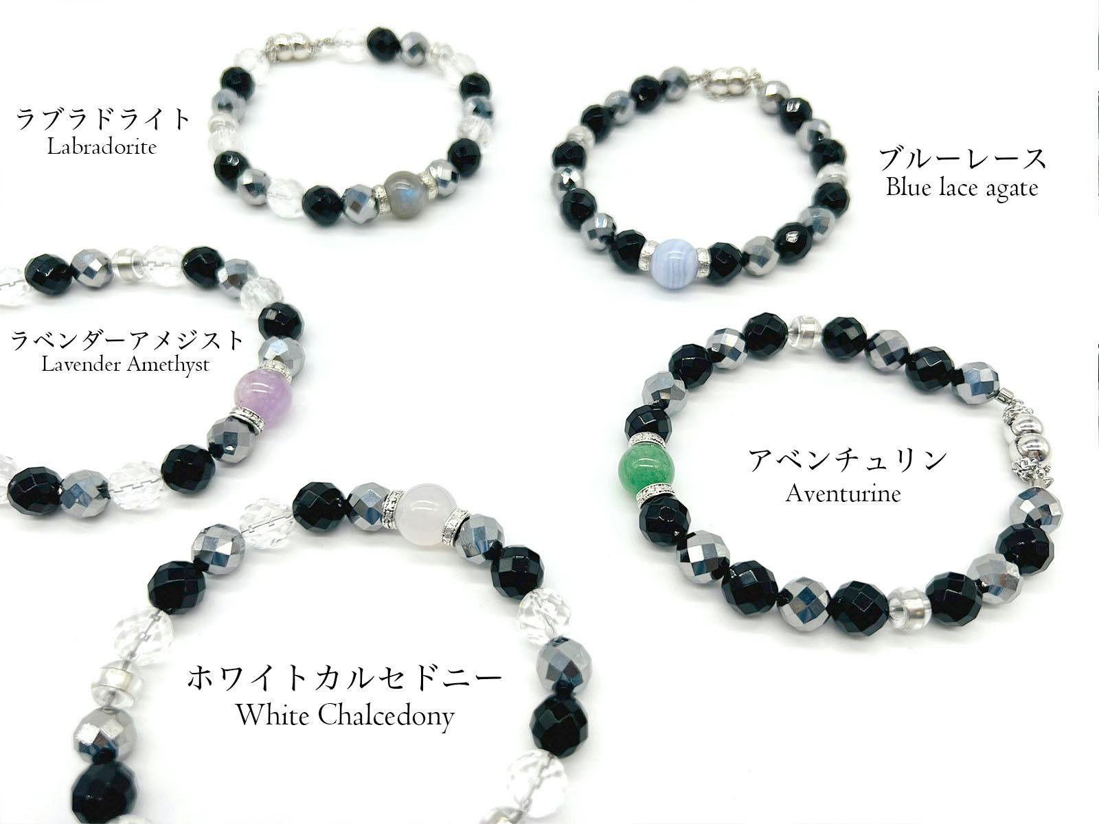 男性用は、高級感漂うブラックやシルバーのカラーがメインで使われたコーディネートに合わせやすいデザインです。天然石のワンポイントもアクセントでおしゃれです!