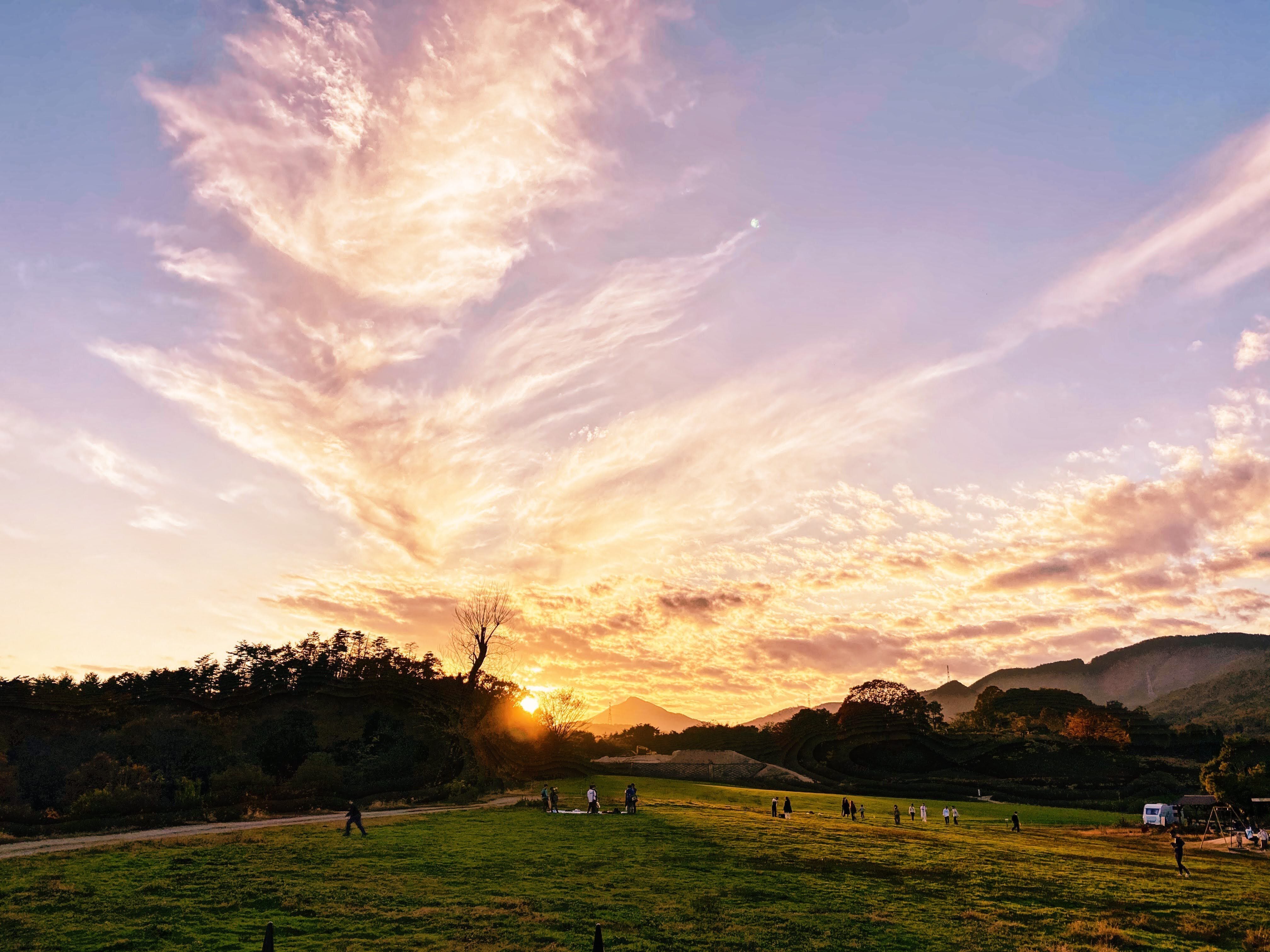写真は牧場の夕焼けです。