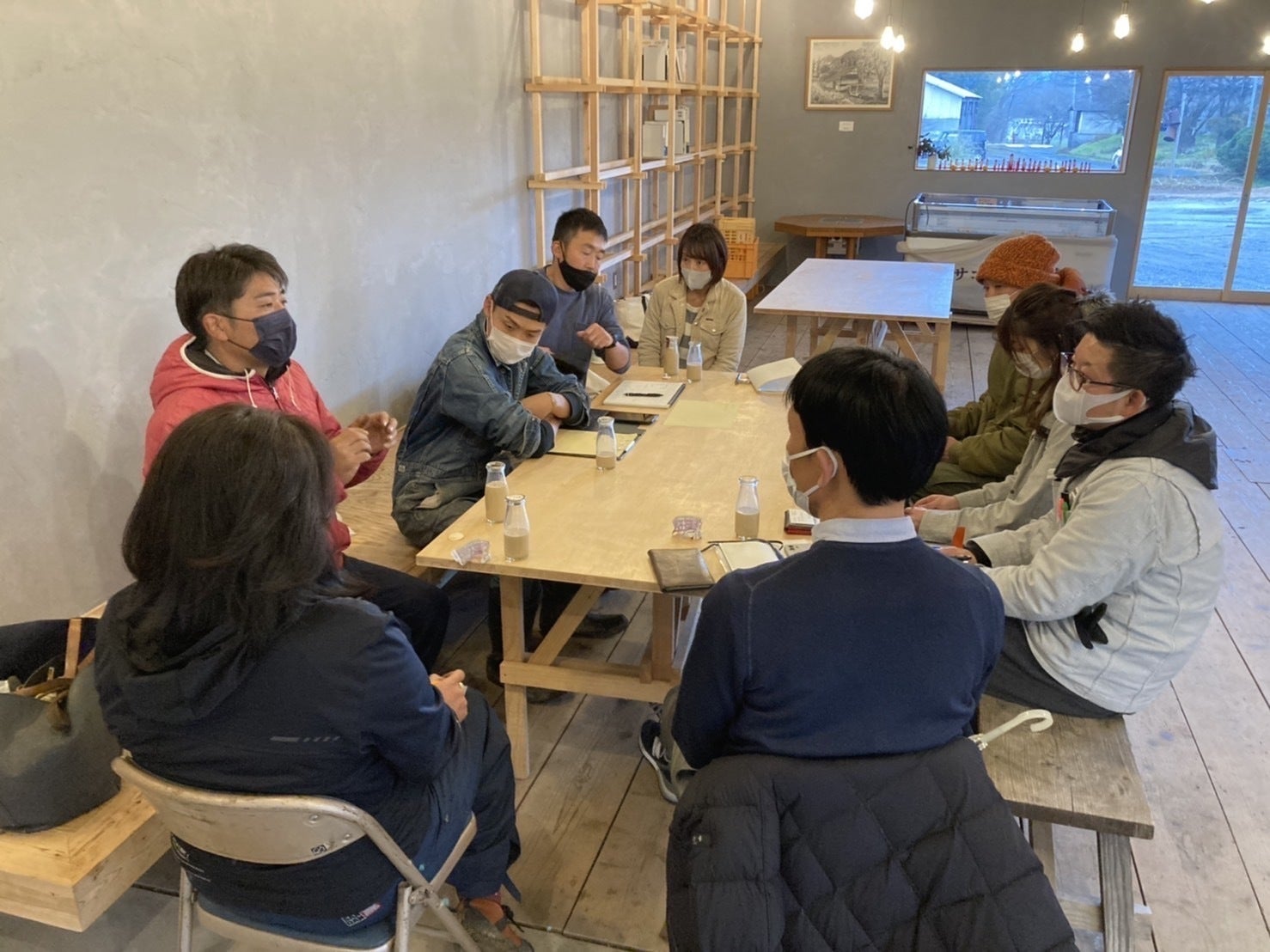 皆さん、明けましておめでとうございます!本年もどうぞよろしくお願い申し上げます。いつも「牛の棲む森」プロジェクトを応援して下さり、有難うございます。今日は、「牛の棲む森」プロジェクト、最初の作戦会議を開催しました。集まったのは、マルニ木工さんチーム、庭師の着能さんチーム、サゴタニ牧農チームです。先ず、今日の感想を一言で表すと、「木の世界は奥が深く面白い!!」です。プロジェクトメンバーである庭師・着能さんの木にまつわるお話が面白過ぎて、、、会議の半分くらいは着能さんの樹木講座でした(笑)ピンクの服が着能さん。メンバー皆んなが話に引き込まれました!「庭は庭師が剪定するが、自然の木々はお互いが風でぶつかり合うことで剪定し合っている」「植えてから5年間が勝負。5年残れば、その土地の土に馴染んで一気に成長する。」などなど、他にも沢山のことを教えて貰いましたが、一番印象的だったのが、「その土地の気候や土壌の性質にあった木を植える」です。広島の気候や土質に合う木を植える。それは苗木が以前あった場所の環境が、牧場の環境と近いか?と言い換えられます。そうすることで、木が安心して根付くそうです(一方で、木も訓練をさせれば気象条件が違っても、ちゃんと順応する強さを持っている様です)。言われてみればその通りだなと思いましたが、こんなに身近にある木々について、ほとんど何も知らないな~ということに気付かされました。このプロジェクトを通して“木”について詳しくなる“気”がしてワクワクしています(つまらないダジャレですみません!)。いつか、着能さんの樹木講座を皆さんにも聞いて貰いたいです。現地視察中、冬の冷たい雨上がりの空にかかったダブルレインボー。今年は良い年になりそう!さて、前置きが長くなりましたが、今日の会議では、“どんな森にしたいか?”について確認をしました。第一は、“牛が過ごしやすい森にしよう” です。夏の暑さも、冬の冷たい風も、この森に入れば防いでくれる。そんな場所にしていきたいです。普段は、人間中心に物事を考える機会が多いですが、この森は牛が一番です。第二は、そうは言っても、“人にとっても心地よい森にしよう”です。植える樹木からなる木の実で美味しいケーキを作ったり、大きくなった木で子どもたちが木登りをしたり。そんな姿を想像しながら森の成長を見守る。そして、皆さんが近くで見守れるように、「牛の棲む森」には遊歩道を設けたいと思います。その遊歩道は老若男女、障害の有無に関わらずみんなが通れる道にしたい。そのための傾斜角度は緩やかにしたいし、道に敷くものは、牛にも優しいものにしたい(例えば竹チップ)。でも、あまりふかふかしたものだと車いすが通れない・・・など、考えるべきことは沢山あります。そして第三は、“100年残る森にしよう”です。100年後に残る森は100年間愛される森です。そんな森は、牛だけでなく、人だけでなく、小動物にとっても、昆虫、微生物、あらゆる生き物にとって住みよい環境であるはずです。育った木は椅子として次の100年を生き続ける。そして、その子孫は育つ場を譲って貰うことでまた大きくなり、次の世代を見守っていく。そんな森に植えたい木の候補は、栗の木、ミズナラ、コナラ、クヌギ、ブナ、クルミの木、赤樫、欅、山桜、カエデ、カシューナッツなどなど。数十種類に及びました。これから一ヶ月かけて樹木の選定と、配置計画を作ります。次の会議は2月上旬。そのころにはより具体的な絵が見えていると思いますので楽しみにしていてくださいね。それでは、本年もどうぞよろしくお願い致します!「牛の棲む森」プロジェクトチーム一同