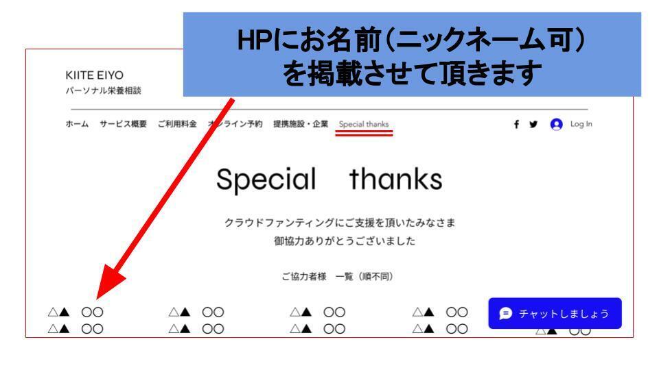 Ⅰ.HPでのお名前の掲載 支援額1,000円