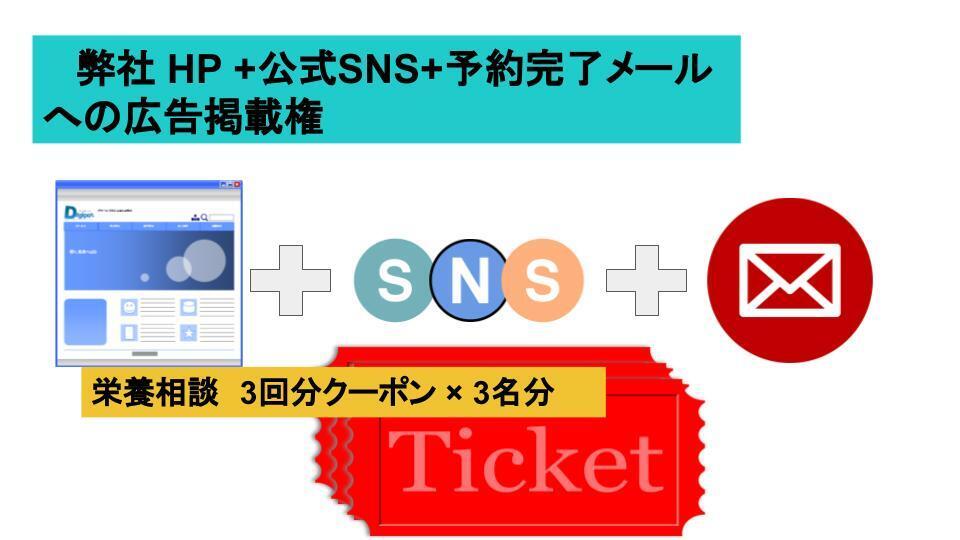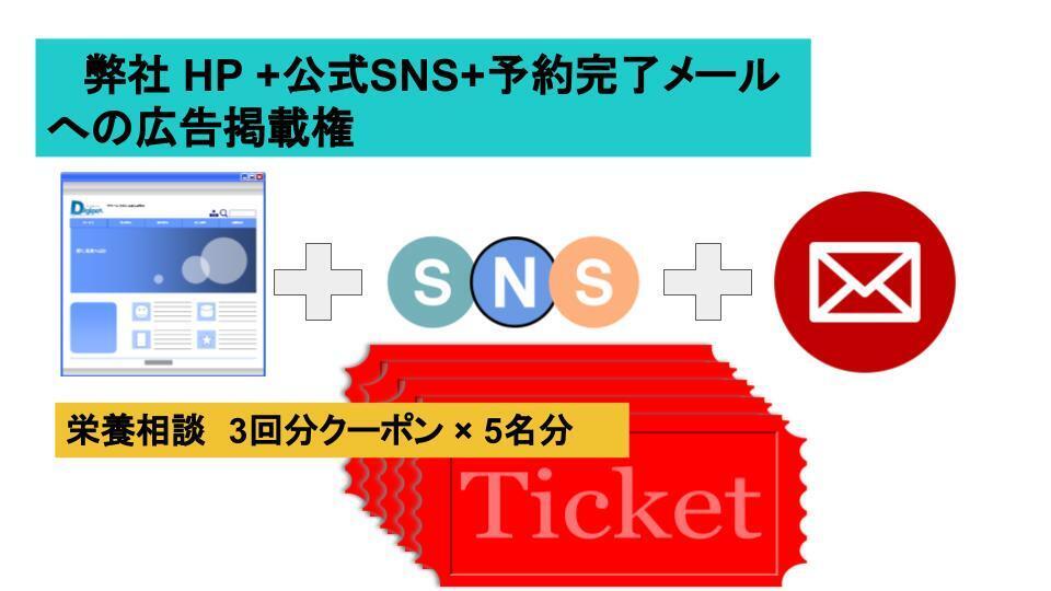 Ⅵ.弊社HP+公式SNS+予約完了メールへの広告掲載権+栄養相談3回分×5人分 支援額60,000円