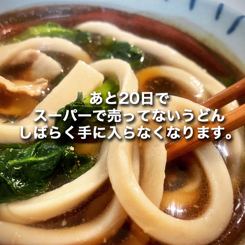 あと20日で、スーパーで売っていない極太うどん、しばらく手に入らなくなります。