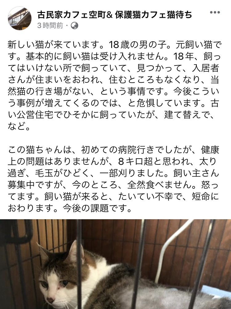 今日も皆様の、ご協力ホントに有難いです。そんな中悲しいお知らせです。上の猫ちゃんはきっと捨てられたと思った事でしょう。結局辛い思いをするのは動物なのです。中途半端な優しさは人間のエゴになってしまう事が多いですね。
