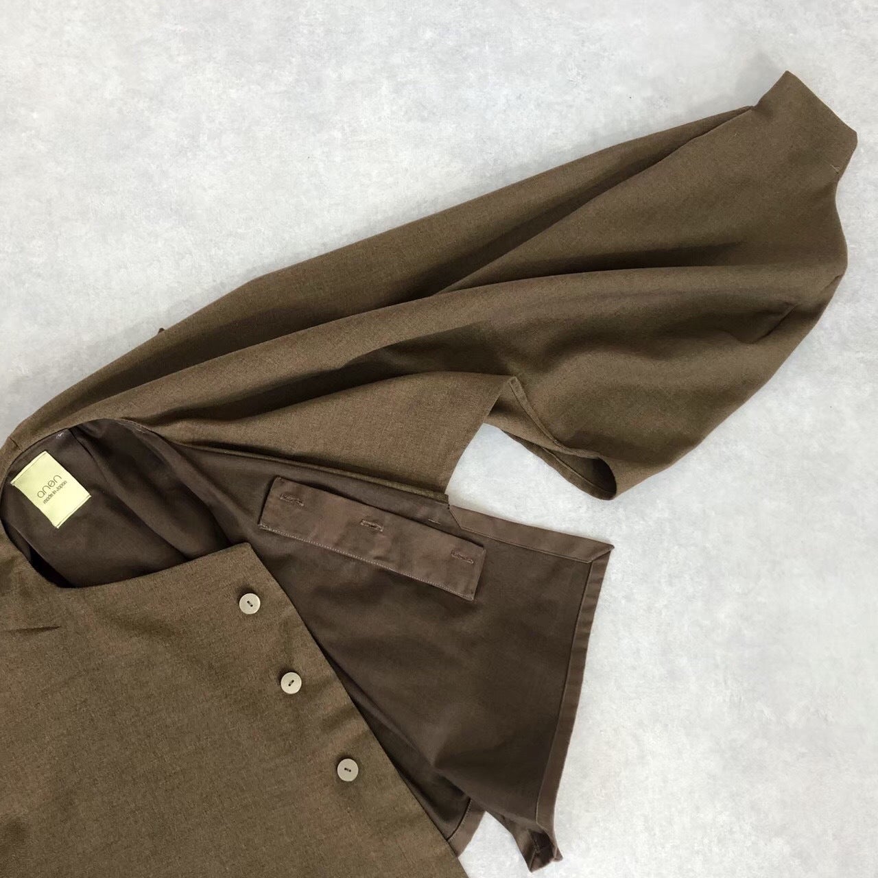 その際、どうせなら自分で一からとことんこだわったものを作って置きたいと思い、1年かけてanen流の服作りを完成させ、2021年の明けに、anenは群馬県発のデザイナーズ/ドメスティックブランドとしてスタートしました。当初は一点物の作品を作り販売しておりましたが、現在はお客様の過半数からサンプルを元にしたオーダーメイドでの注文を頂き、日々お客様とやり取りを重ねながら、オーダーメイドとしての一点物制作がメインとなっております。