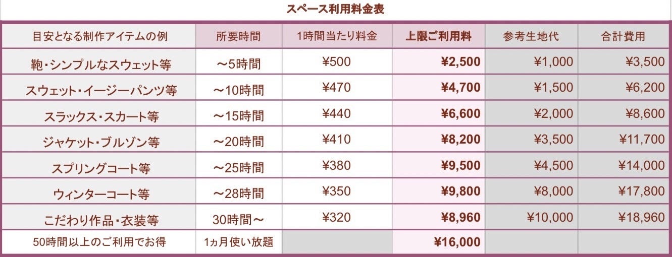 という2通りの目的でご利用頂けると嬉しいです。現在日暮里で生地を買い制作されている方、また周辺にお住いでミシンが無いため制作を断念される方にとっても、以下の懸念を解決します。