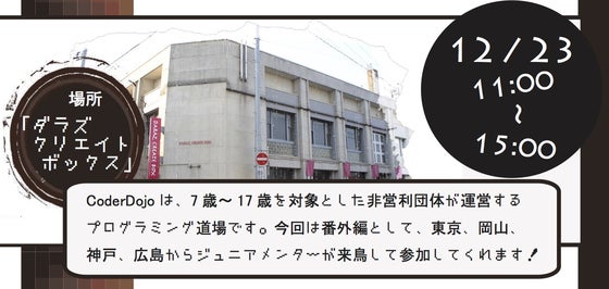 そのジュニアメンター達が鳥取県に来鳥し、県内の子ども達との交流が出来るようCoderDojo大山の番外編として