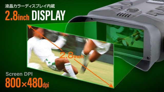 2.8インチの大型カラーディスプレイ搭載だから、特等席のような迫力でスポーツやレジャーを堪能できます。さらに、自分だけではなく家族や友人と一緒に同じ瞬間、同じ感動を分かち合うことができます。